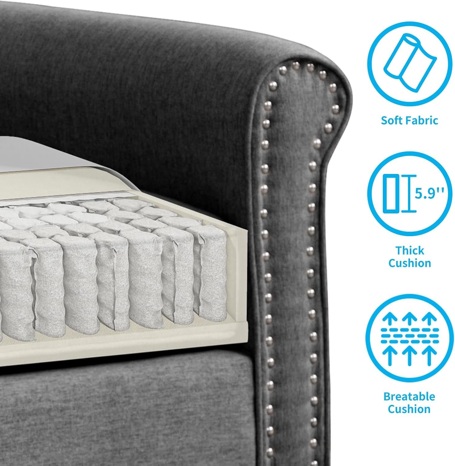Mjkone 3 Pieces Living Room Sofa Set, Modern Sectional Sofa Couch and Loveseat & Armchair Set, Gourd Shape Wood Legs & Linen Fabric & Nailhead Trim Design Sofas Couches for Living Room, Dark Grey