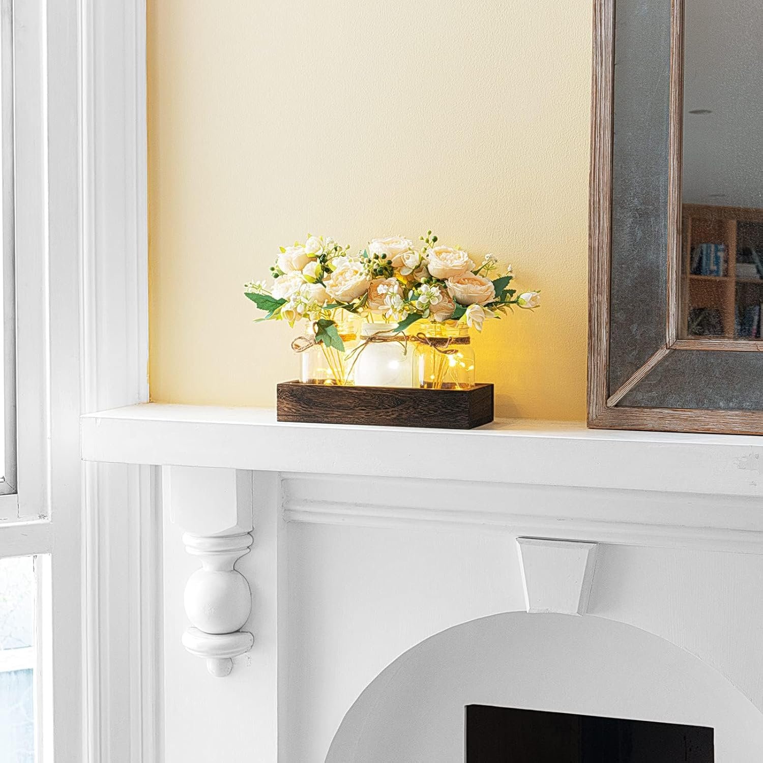 13 reviews for Mkono Mason Jar Lights Centerpiece Table Decor for Dining Room Farmhouse Wood Tray with 3 Jars Flowers Thanksgiving Decoration for Coffee Table Kitchen Living Room Wedding