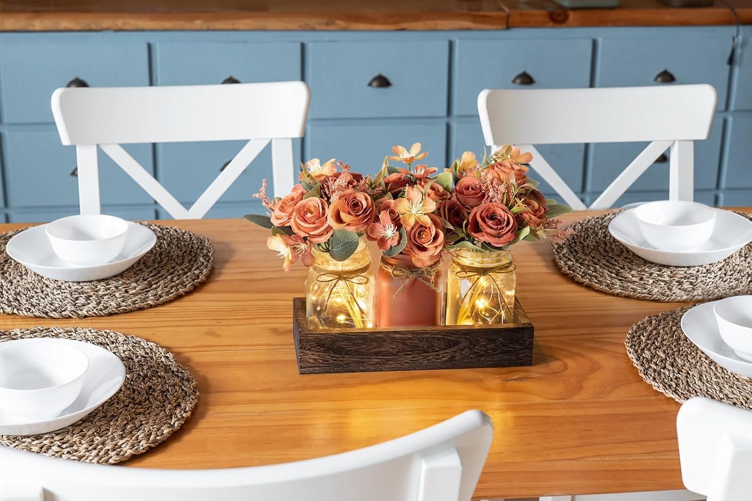 13 reviews for Mkono Mason Jar Lights Centerpiece Table Decorations for Dining Room Farmhouse Coffee Table Decor Tray with 3 Jars Flowers Centerpieces Fall Decor for Kitchen Living Dining Room, Orange