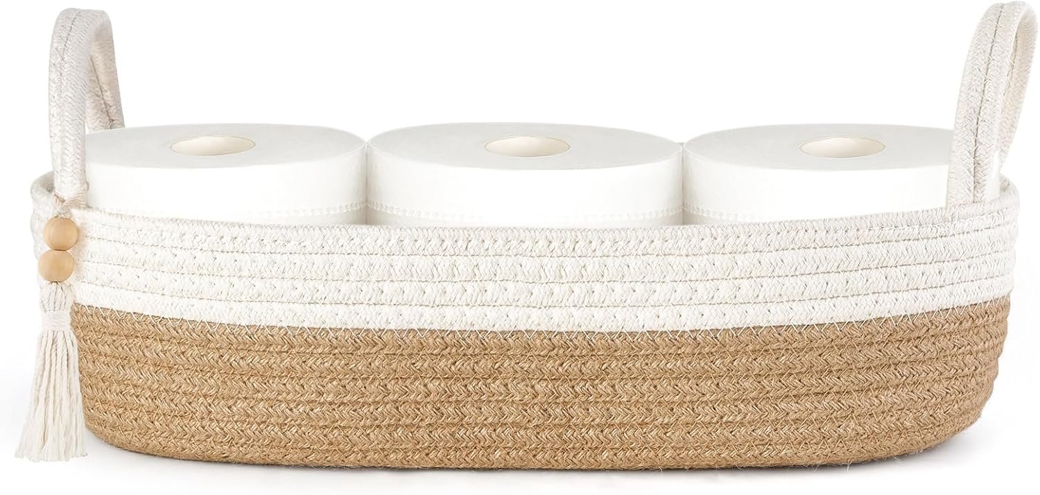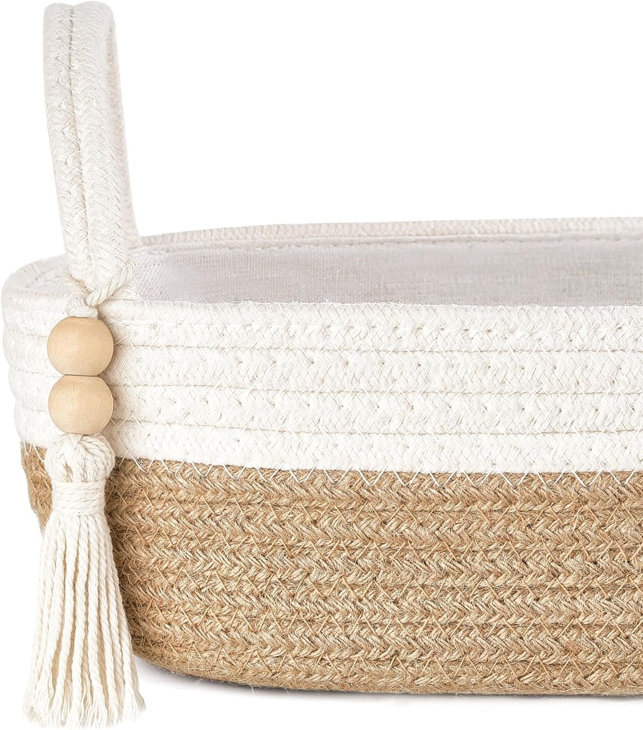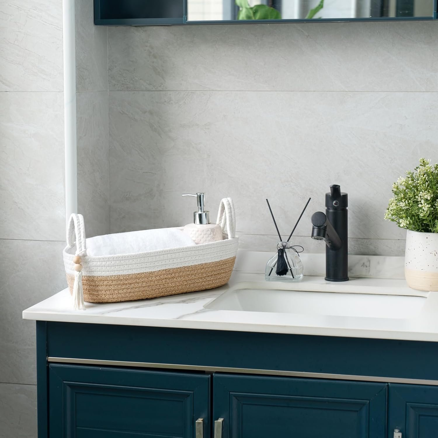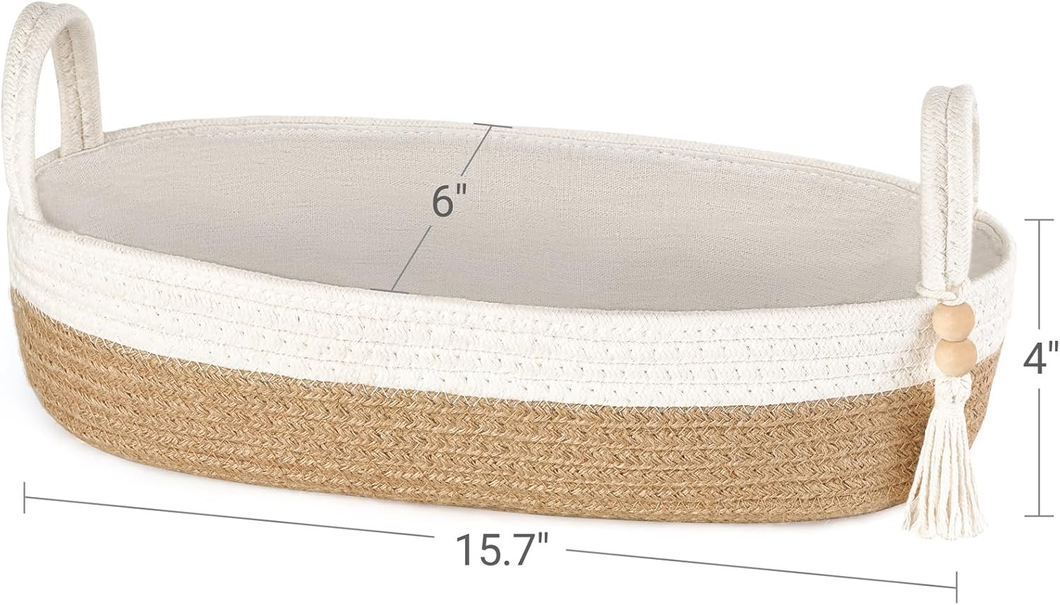 13 reviews for Mkono Small Storage Basket for Toilet Tank Top Boho Bathroom Decor Woven Rope Toilet Paper Tray Organizer for Shelf Bedroom Living Room, Brown and White, 1 Pack, 15.7″ L x 6″ W