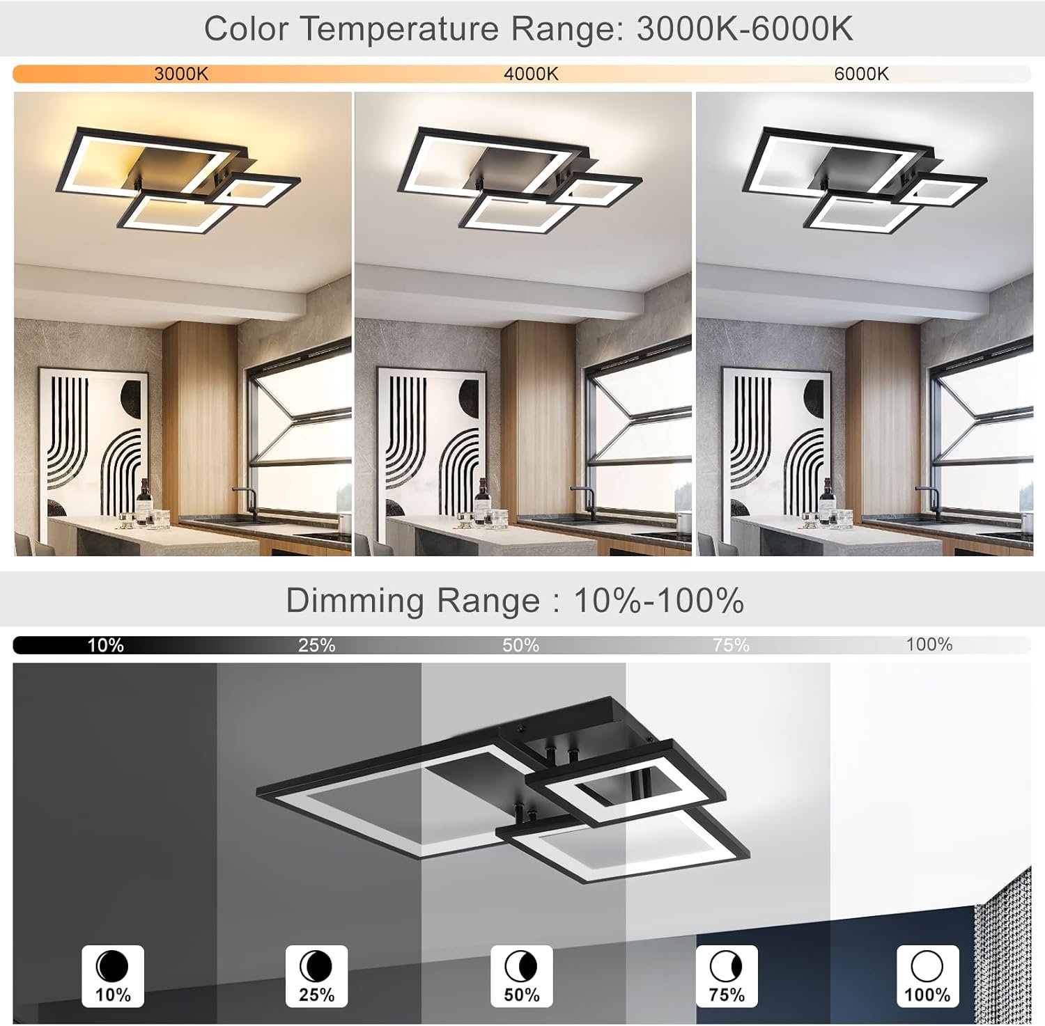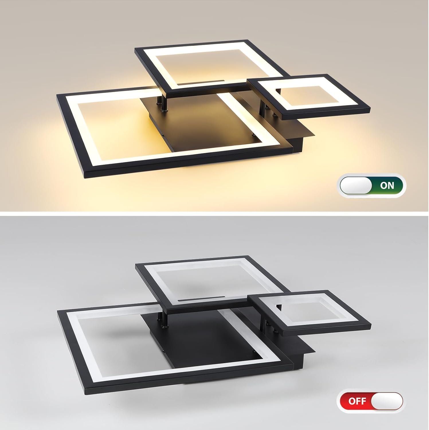 9 reviews for Modern Black Led Ceiling Light 3-Square Design 3000K-6500K Dimmable LED Ceiling Light with Remote 33W Acrylic Ceiling Lighting Fixture for Bedroom Kitchen Dining Room Office Lamps