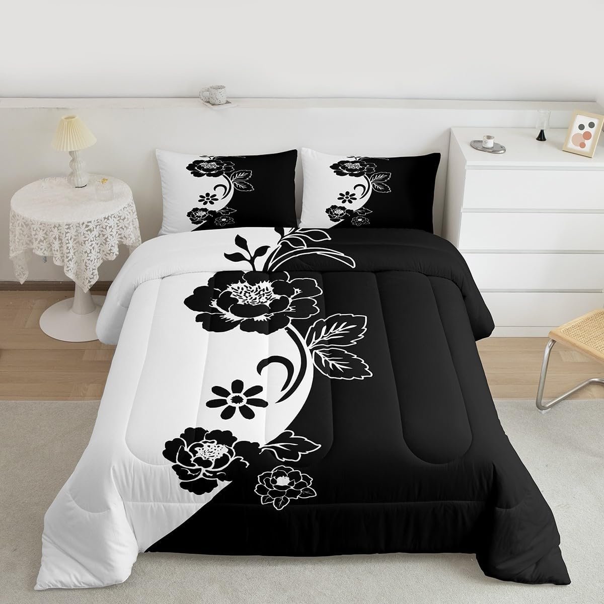13 reviews for Modern Floral King Size Comforter Set,Kids Black and White Decor All Season Bedding Set,Teens Creative Abstract Flowers Comforter,Girls Yin and Yang Decor Quilt Set Bedroom Collection 3Pcs