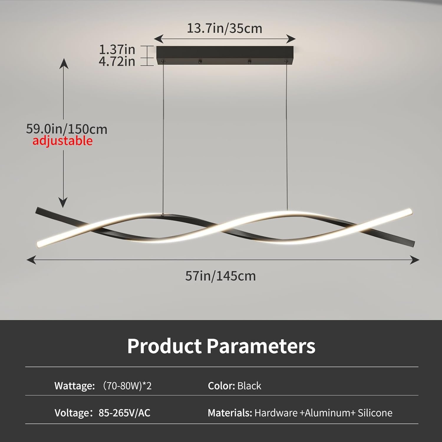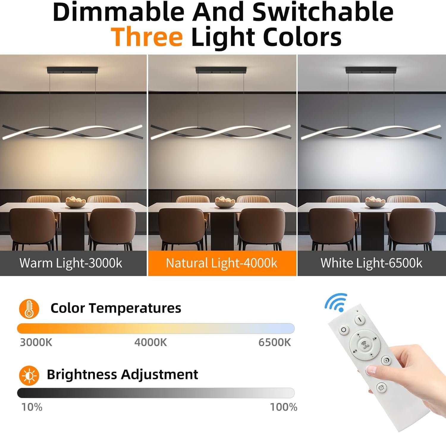 Tags: 3000K6500K, 57IN, Adjustable, Aluminum, Ceiling, Chandelier, Color, Control, Dining, Island, Lamp, Led, Light, Lighting, Living, Modern, Pendant, Remote, Room, Temperature