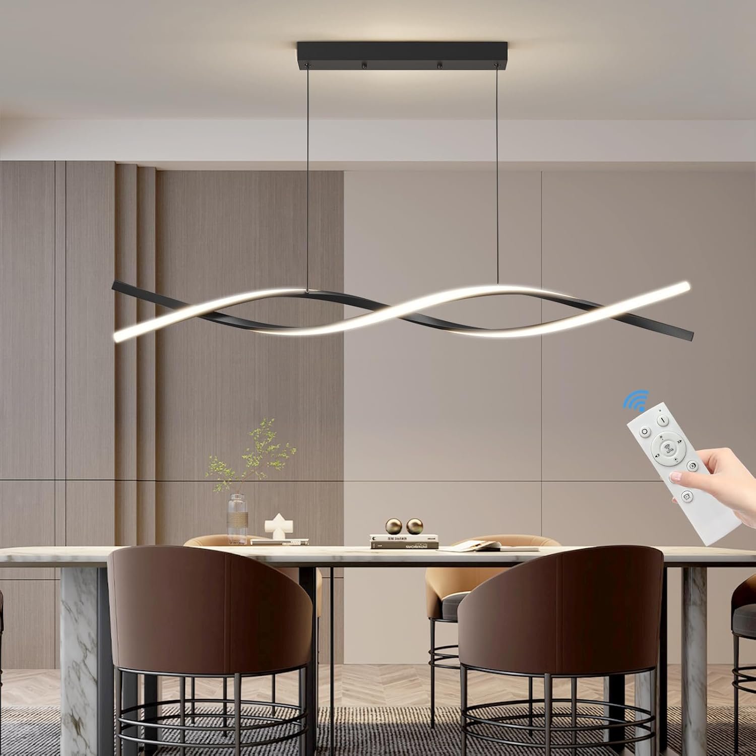 Modern LED Ceiling Pendant Light, 57IN Modern Chandelier with Remote Control 3000k-6500K Adjustable Color Temperature, Aluminum Island Lighting Lamp for Dining Room, Living Room, Island
