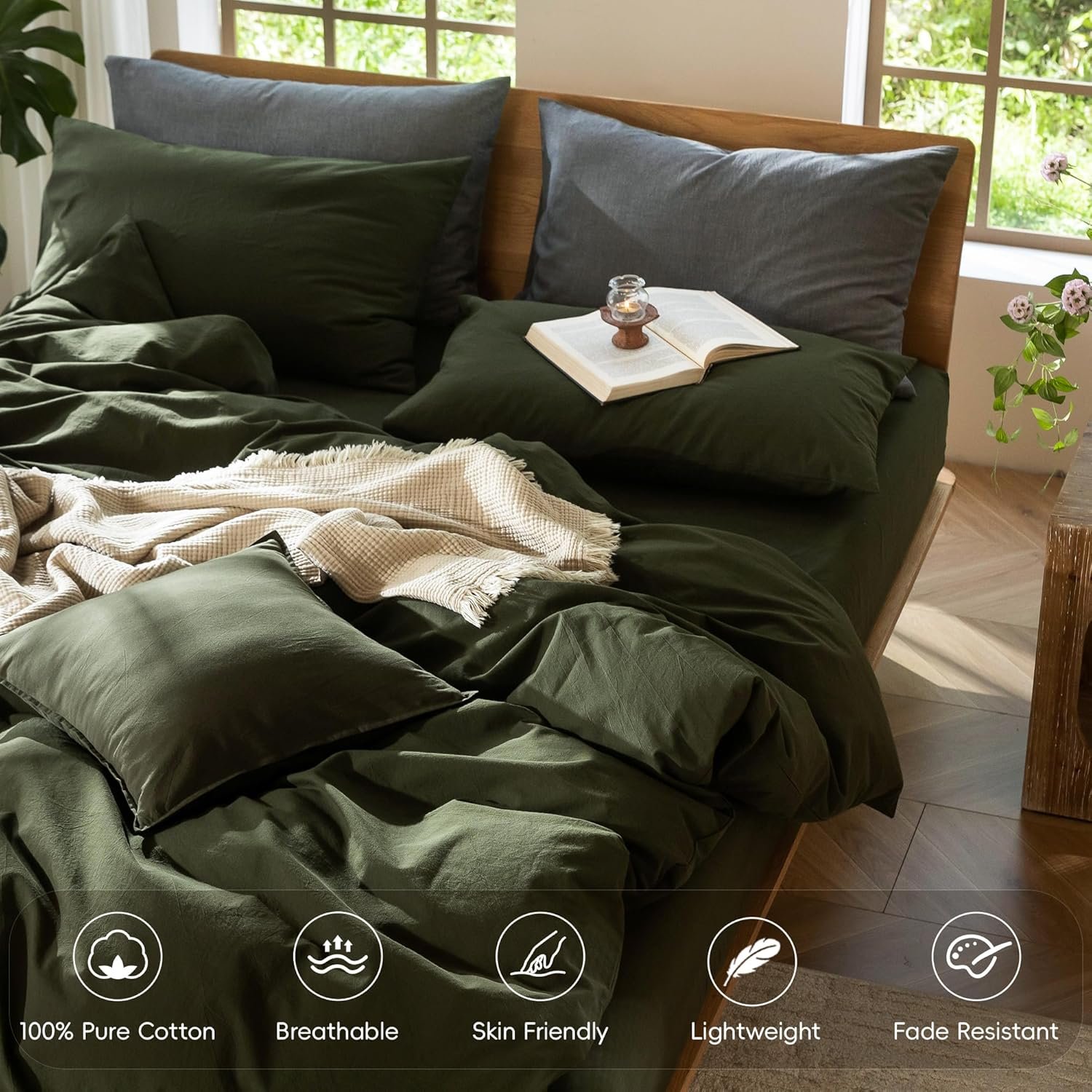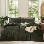 13 reviews for MooMee Bedding Duvet Cover Set 100% Washed Cotton Linen Like Textured Breathable Durable Soft Comfy (Solid Olive Green, Queen 90″x90″)