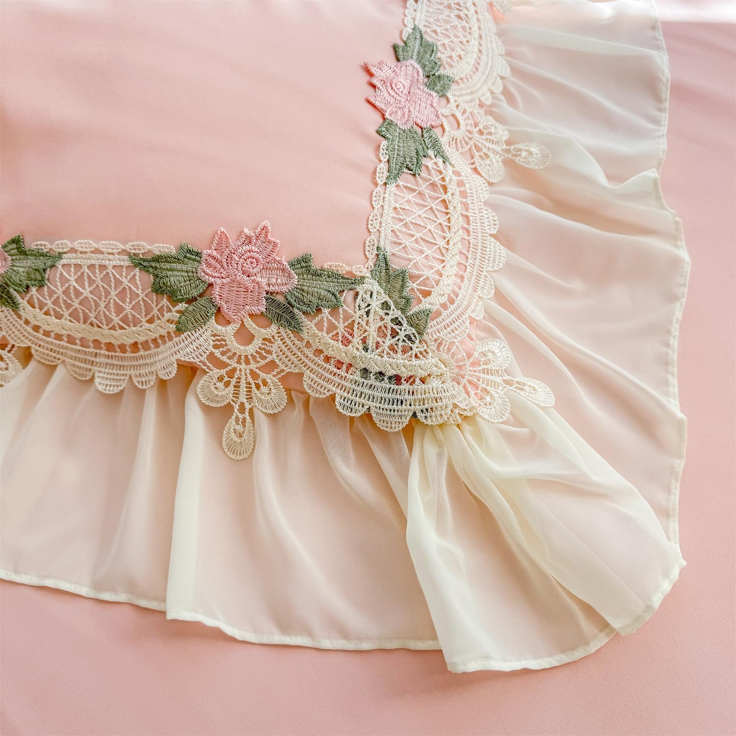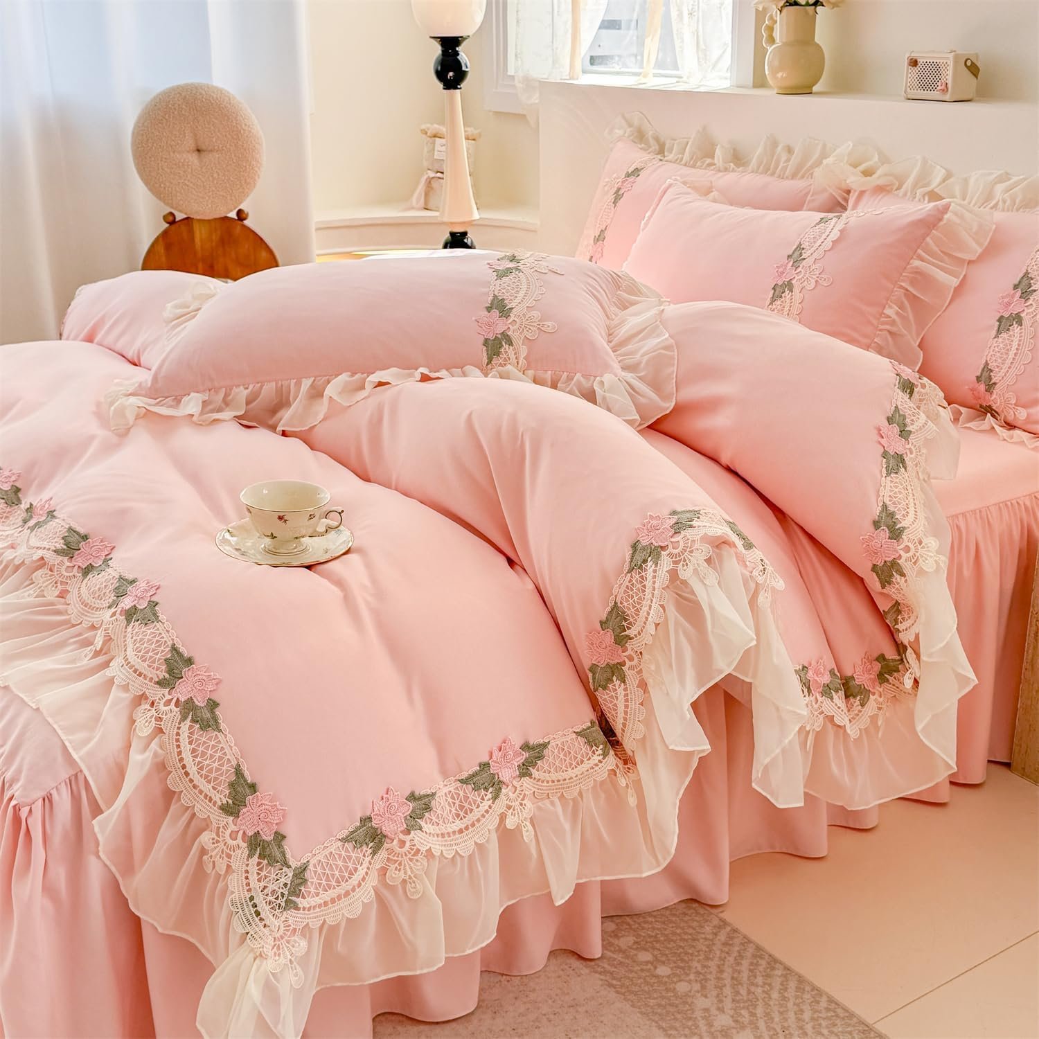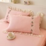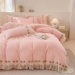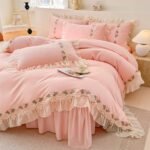 8 reviews for MOOWOO Pink Bedding-Flower Chic Ruffle Lace Bedding Set 3 Piece Comforter Queen Duvet Cover with Zipper Closure,Coquette Room Decor for Girls Room