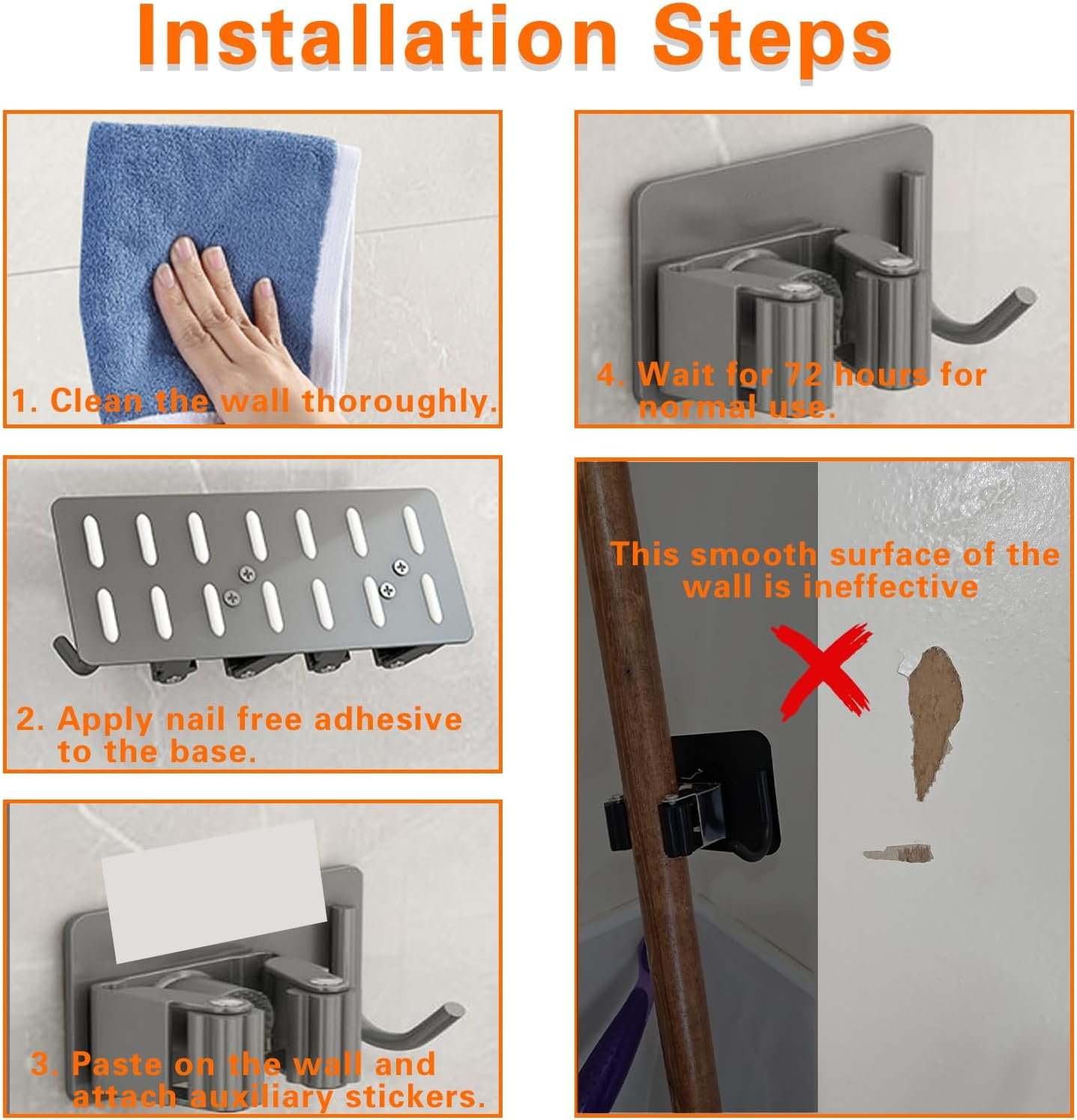 8 reviews for Mop Broom Holder-Self Adhesive Stainless Steel Broom Hanger Organizer for Bathroom, Kitchen, Office,Utility Room,Laundry Room,Home Garden, Garage Storage and Organization Rack(Silver gray-4Psc)