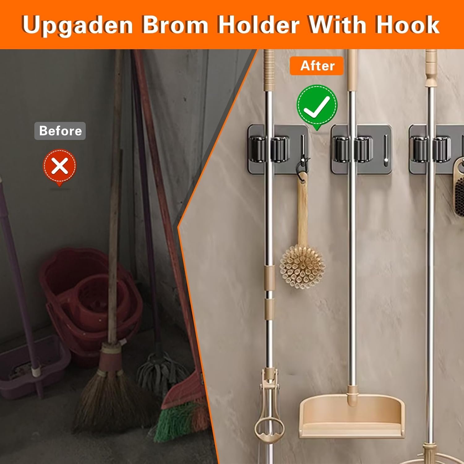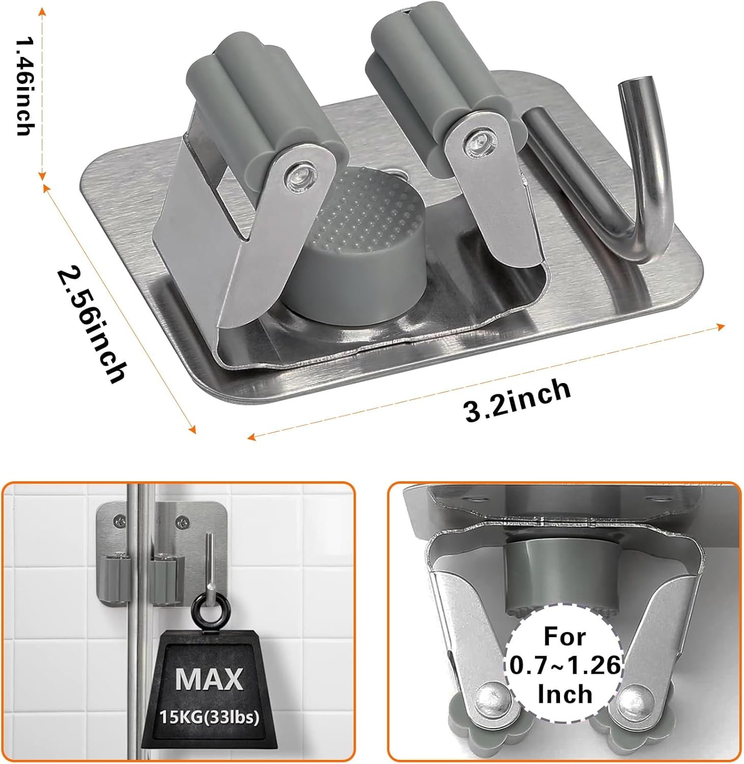 Mop Broom Holder-Self Adhesive Stainless Steel Broom Hanger Organizer for Bathroom, Kitchen, Office,Utility Room,Laundry Room,Home Garden, Garage Storage and Organization Rack(Silver gray-4Psc)