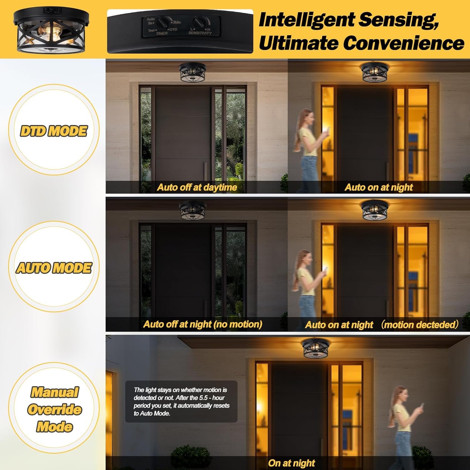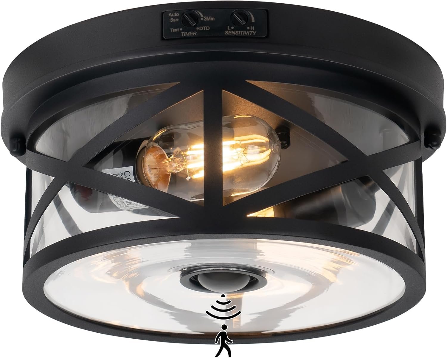 8 reviews for Motion Sensor Outdoor Ceiling Light, Adjustable Black Flush Mount Light Fixture, 2-Light Porch Lights Outdoor, Clear Glass Industrial Exterior Ceiling Lights for Patio, Garage, Entryway, Farmhouse