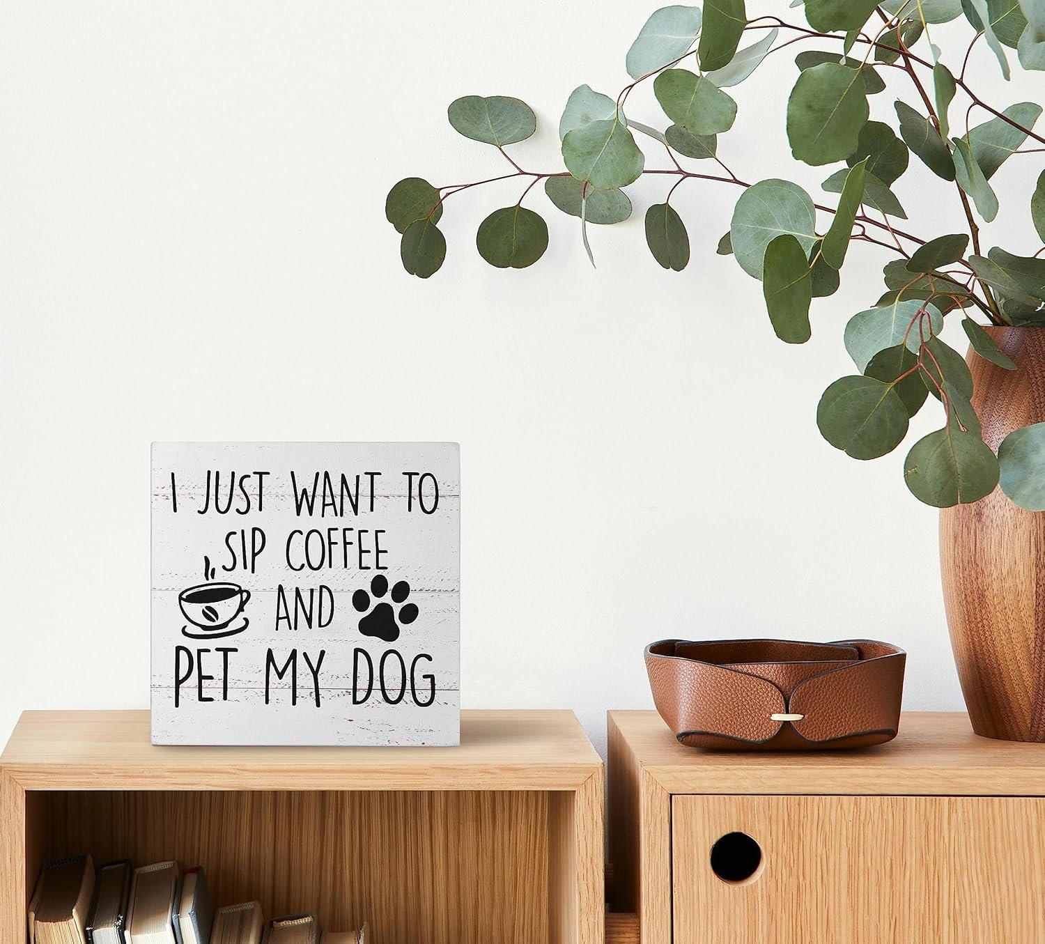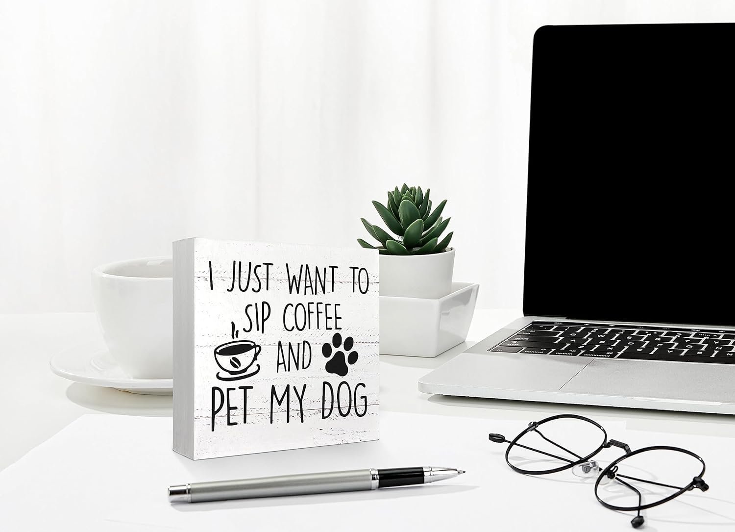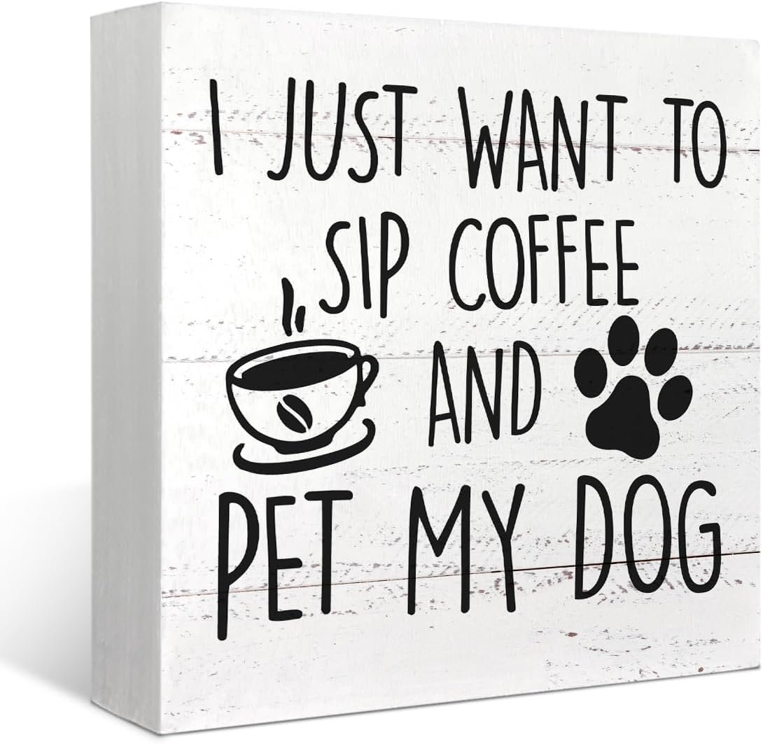 Mtrgdn Dog Lover Gifts Wooden Box Sign, Dog and Coffee Decorations for Home, Rustic Office Desk Decor