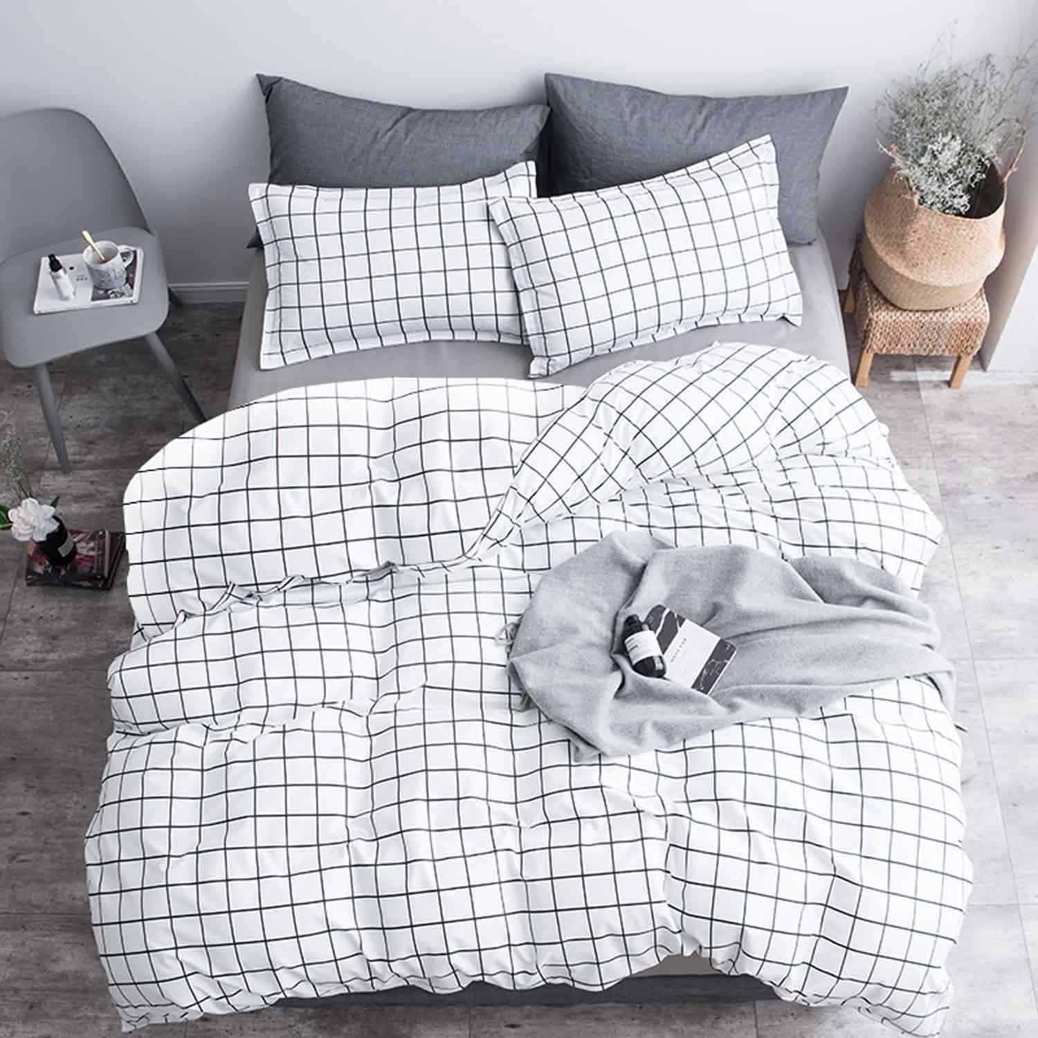 13 reviews for NANKO Queen Duvet Cover Set Grid, 90×90 Soft Bedding Cover, Luxury Cool Lightweight Microfiber 3pc Set (1 Cover 2 Pillowcase) with Zip,Tie – Modern Style Preppy Room Decor Bed Quilt Cover, Plaid White