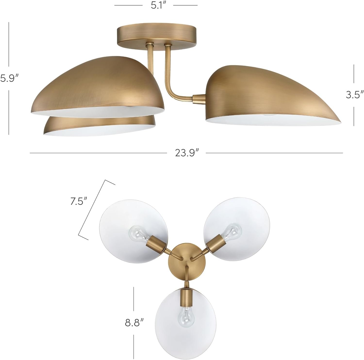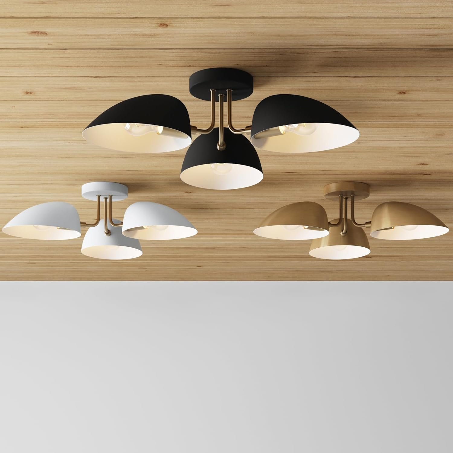11 reviews for Nathan James Argo Semi Mount Flush Ceiling Light, 3-Lights Modern Retro Lighting with Black Rounded Shades for Hallway, Dining Room and Bedroom, Vintaged Brass