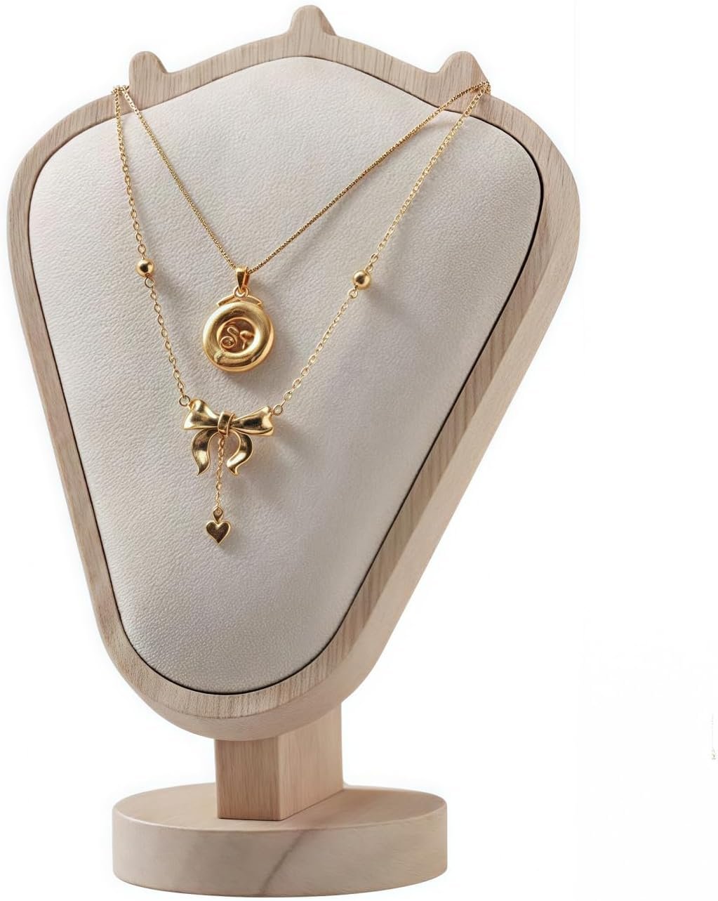 Natural Body Wood Necklace Display Stand with Beige Flannelette Soft Mat Necklace Holder Organizer Desktop Stand for Home Store Dresser-4.45″x8.4″x12″