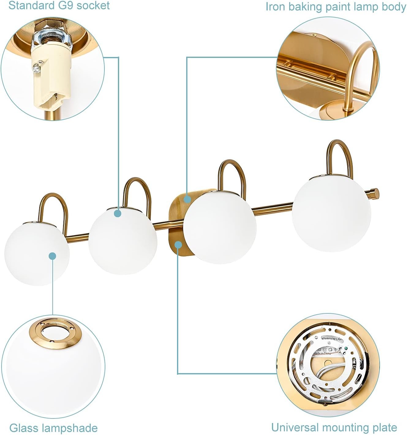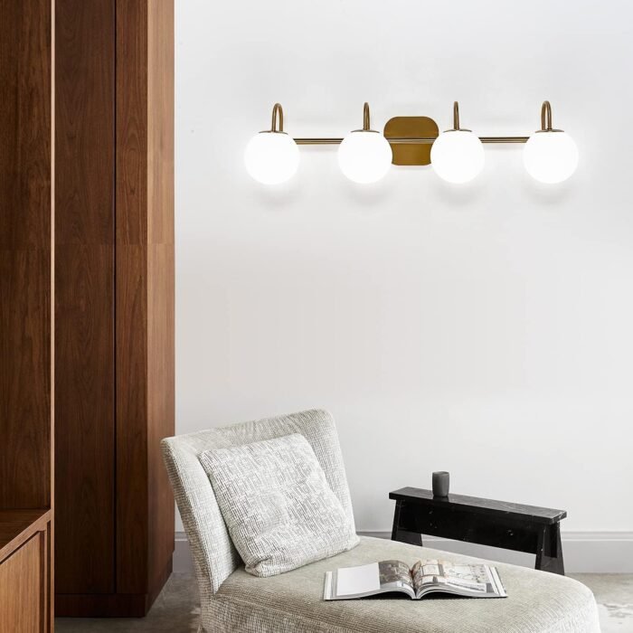 8 reviews for New Bathroom Vanity Light Fixtures 4-Lights Brushed Brass Frame and Milk White Glass Globe Shade Modern Wall Sconce Lighting Bath Vanity Lights Bar Over Mirror (Exclude G9 Bulb)