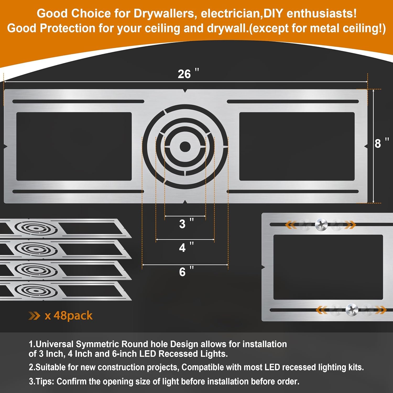 8 reviews for New Construction Mounting Plate, 3-4-6 Inch, LED Recessed Lighting Housing Kits, Flat Steel Rough in Bracket Fixture for LED Light Bar, 48PC Shallow Recessed Lighting Housing Plate