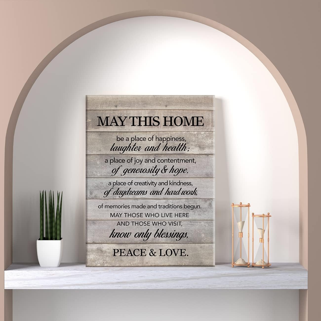 New Home Wall Art May This Home Be a Place of Happiness Canvas Print Inspirational Quote Framed Painting for Wall & Tabletop Decor Housewarming Gift