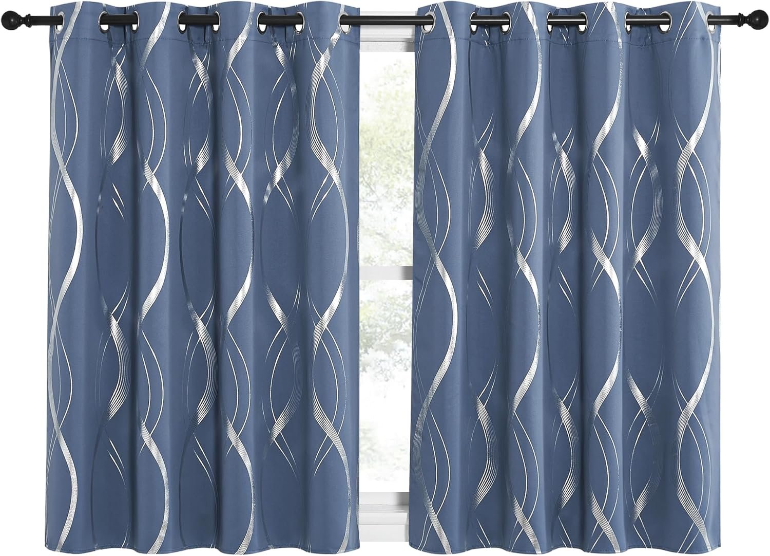 NICETOWN Bedroom Curtains Small Blackout Panels, Biscotti Beige, Set of 2, 34 by 54 Inch, Window Treatment Thermal Insulated Blackout Wave Line Foil Print Design Curtains for Kitchen, Cafe, Loft