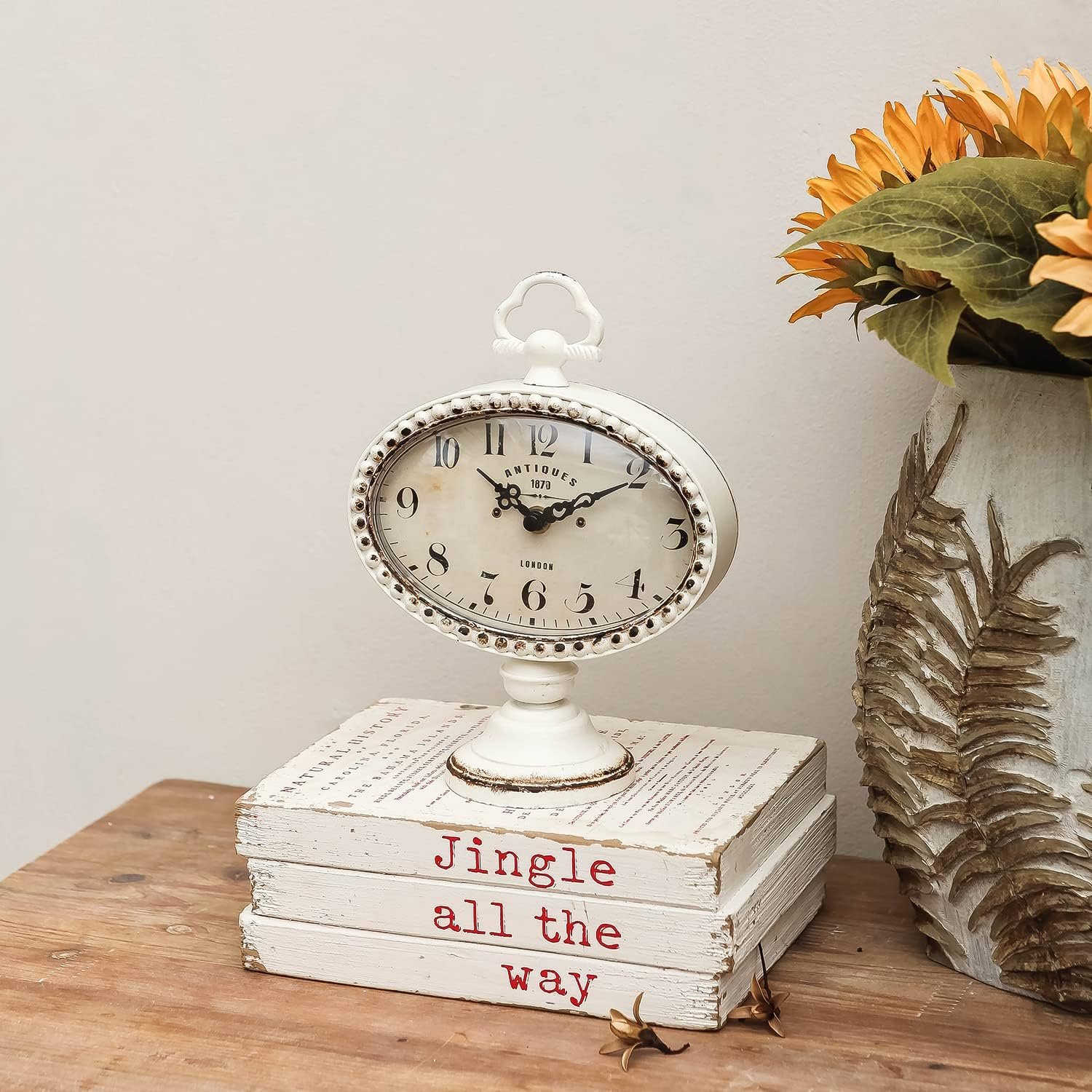 9 reviews for NIKKY HOME Vintage Table Clock with Beads, Silent Shelf Desk Top Clock Battery Operated Antique Design, Chic Home Decor for Fireplace Mantel, Desktop, Countertop, White