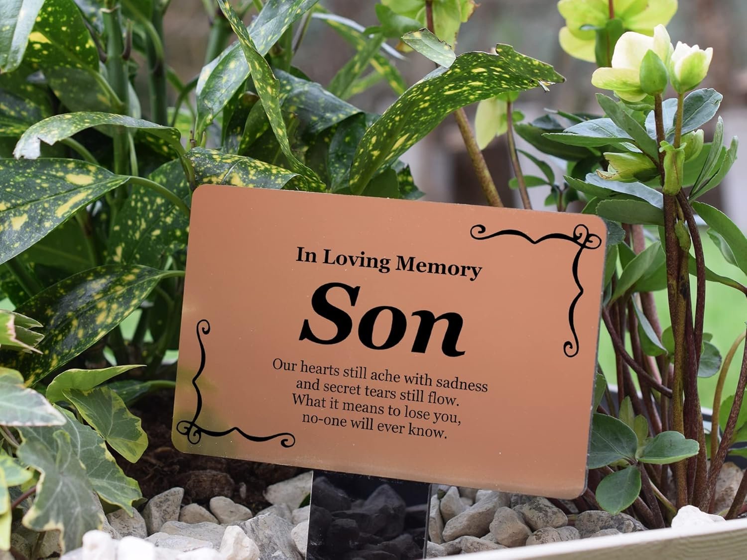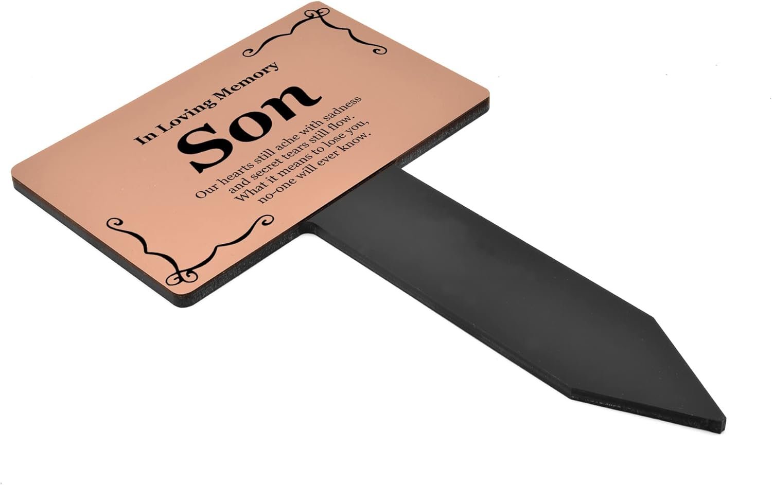 3 reviews for OriginDesigned Son Memorial Remembrance Plaque Stake – (Silver/Gold/Copper/Black & White) Waterproof, Outdoor, Grave Marker, Tribute, Plant Marker (Copper)