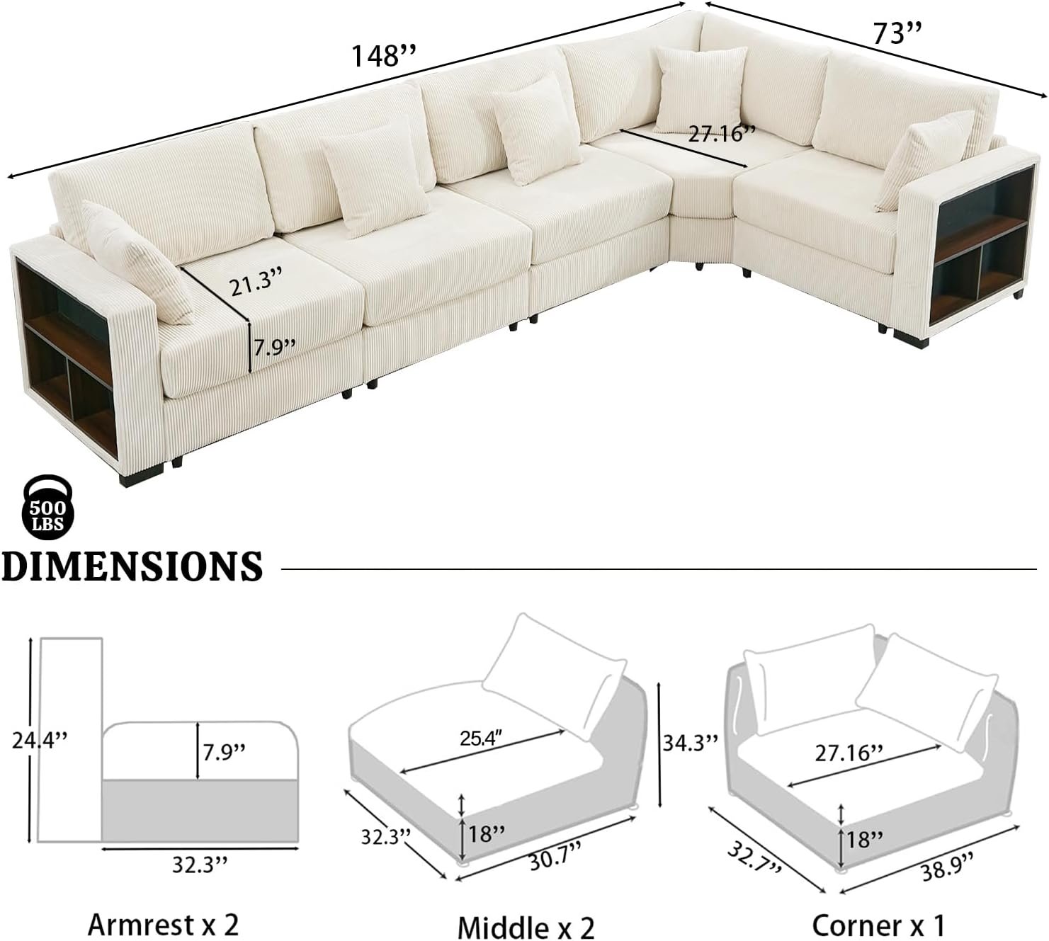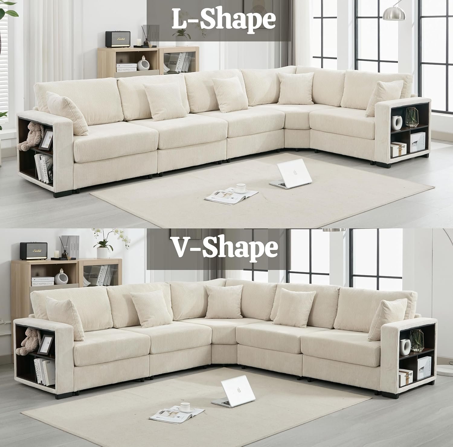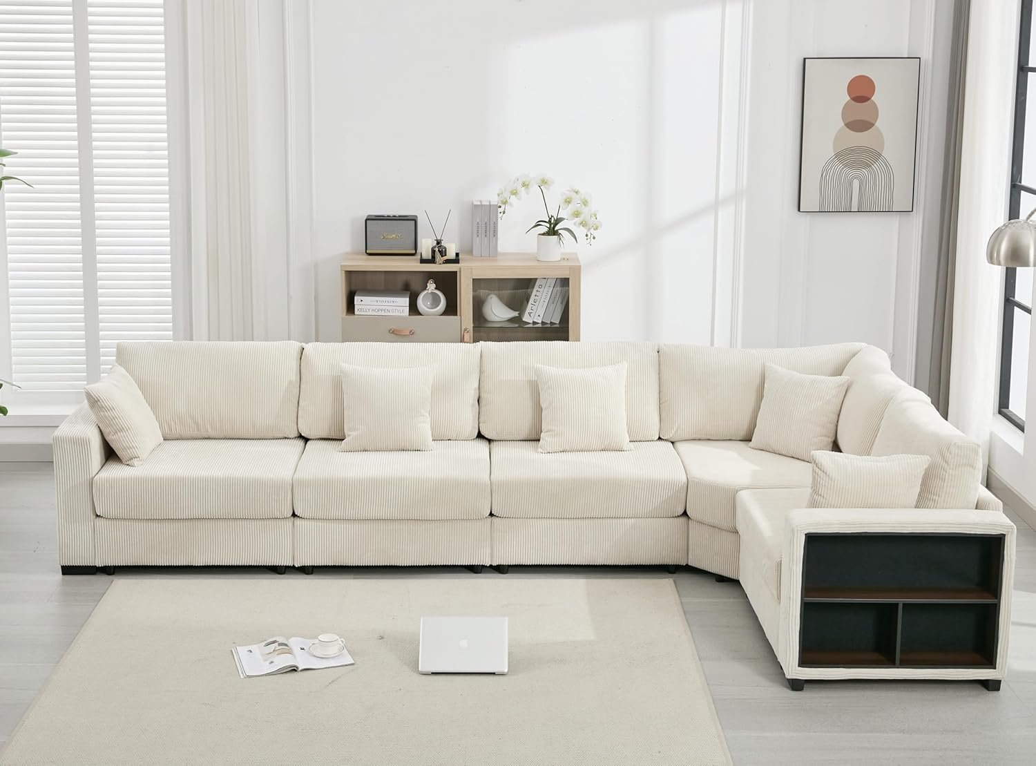 2 reviews for Oversized Modular Sectional Sofa Sleeper with Storage, Modern Comfy Couches Adjustable Backrest with Movable Ottoman 6 Seater L Shape Sofas for Living Room Spacious (Cordury White, 5 Seater)