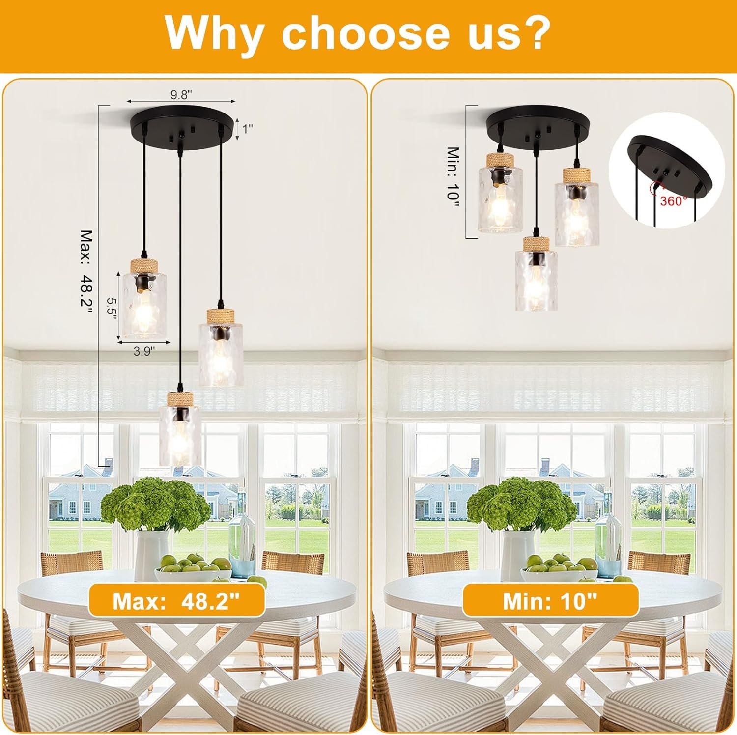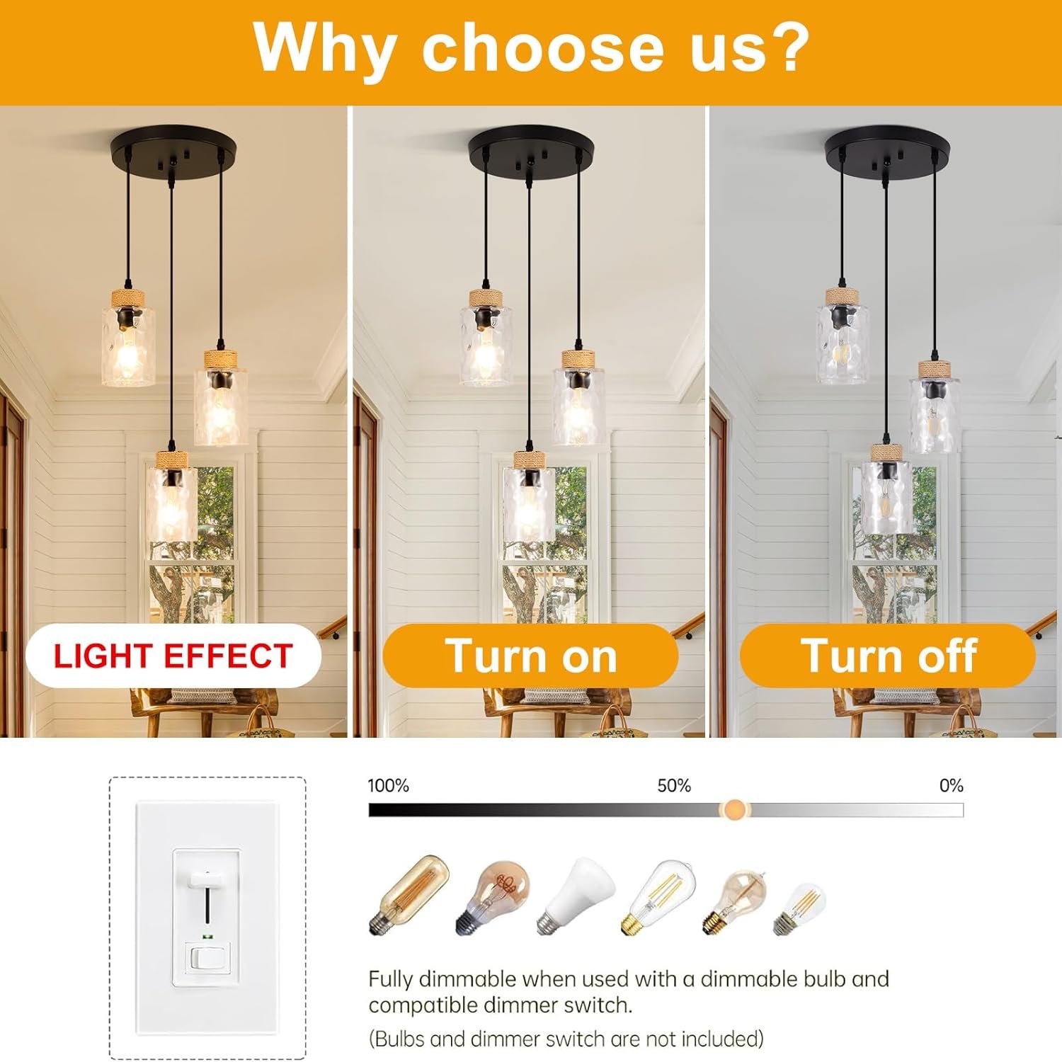 A bright light is needed above the kitchen table, and this fixture is exactly what I’m looking for. It comes with an extendable cord, allowing installation close to the ceiling or stretched to its full length. Although I hired an electrician for the installation, I could have done it myself with the time and tools.The fixture is equipped with three E26 sockets. I ultimately opted for dimmable smart bulbs—the results are quite satisfactory.It is a clean, modern look that will go well with a mid century or transitional look.