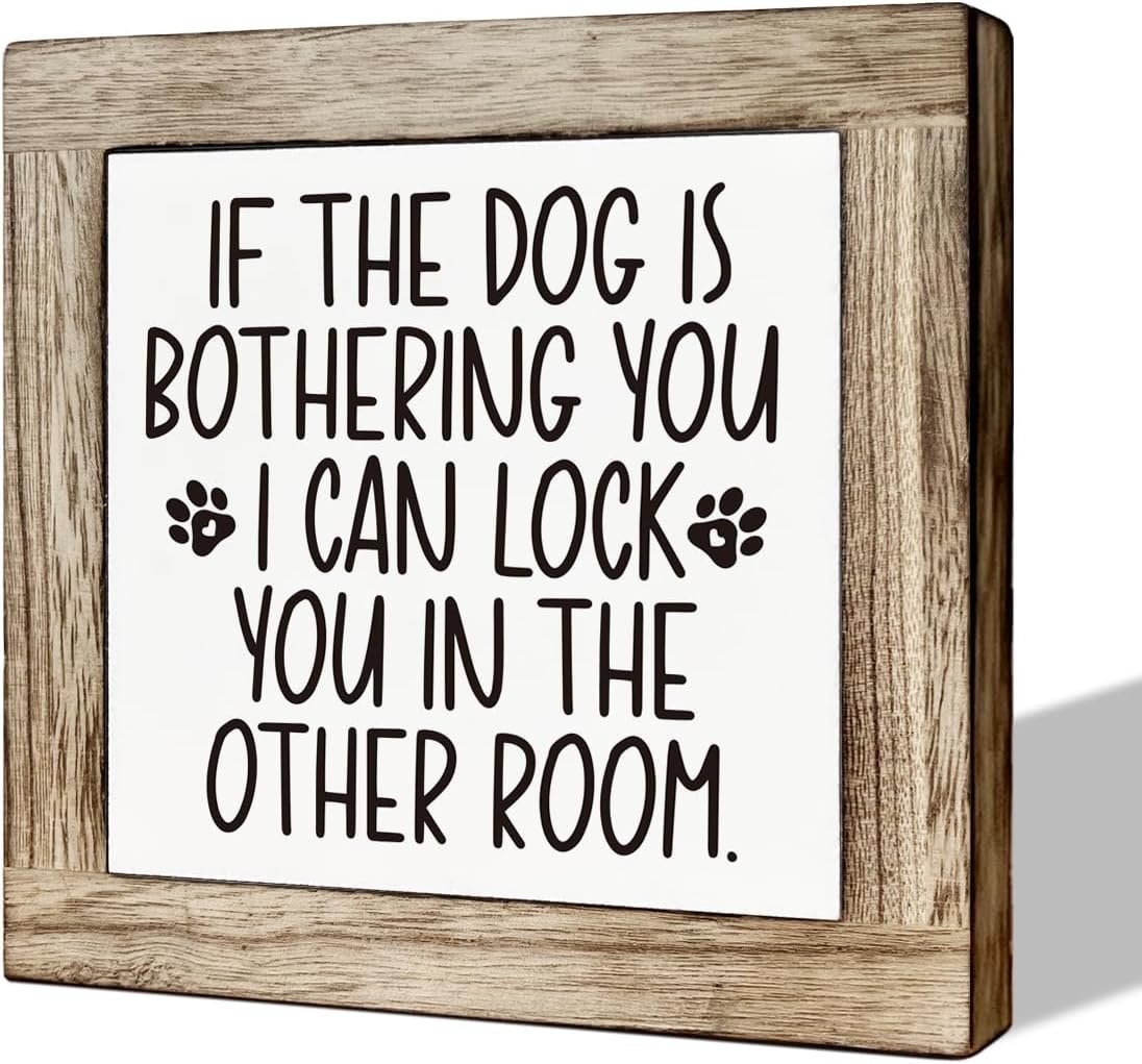 4 reviews for Pet Decor Sign, Funny Dog Decor, Wooden Box Signs for Home Decor, Dog Themed Home Decor, Farmhouse Wood Sign, Tabletop Decor, If the Dog is Bothering You I can Lock You in the Other Room Sign