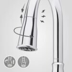 In regards to Pfister Rosslyn Kitchen Faucet with Pull Down Sprayer and Soap Dispenser, Single Handle– We were concerned the faucet was too high for our low hanging sink. However, the installer convinced us it was OK. Boy was he right! It is the perfect height. We can now get big pots under the stream of water and the pull down sprayer chases any crumbs down the drain. The soap dispenser works great. Water spots are easily wiped away. The pull down usually retracts to its home position and if it doesn’t, a slight pull/push puts it right. After using it for a week, I love it. My partner loves it. Glad we kept it and would buy it again.