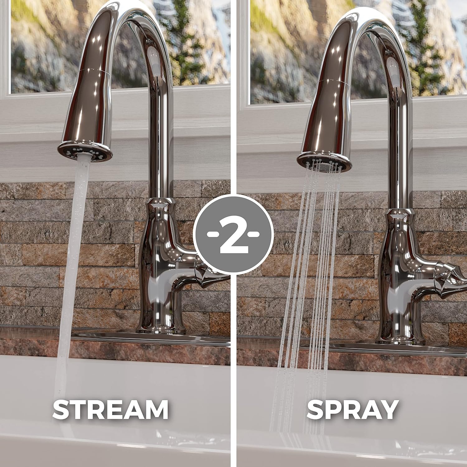 I love this faucet! It actually the second one we put in. The first was half the price and fell apart quickly.This faucet has good water pressure on both the stream and spray settings. It a good looking faucet as well.The soap dispenser broke about a month or 2 have installing it. I went on the company website and reported it through email. I never received a response which worried me until I received an email saying a new dispenser had been shipped. No fuss, no questions just a replacement!!***So I’ve had this faucet for awhile now and It is just as great as the day I bought it!I post some reviews, but I have never come back to a review to add to it, but this faucet and the company’s customer service are so good I had too. Can’t recommend this faucet enough!