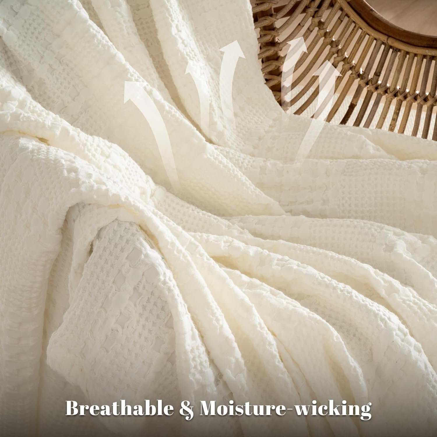 13 reviews for PHF 100% Cotton Waffle Weave Blanket King Size for Bed, Soft Lightweight & Breathable, All-Season Comfort, Luxury Aesthetic Woven Bedding for Home Decor, 108″x90″, Ivory
