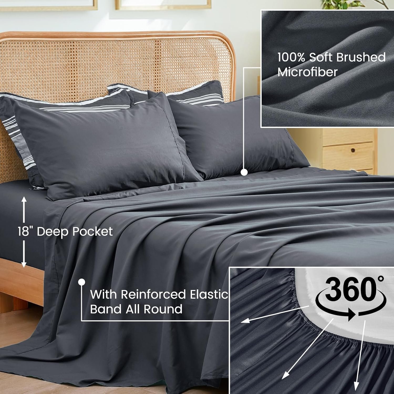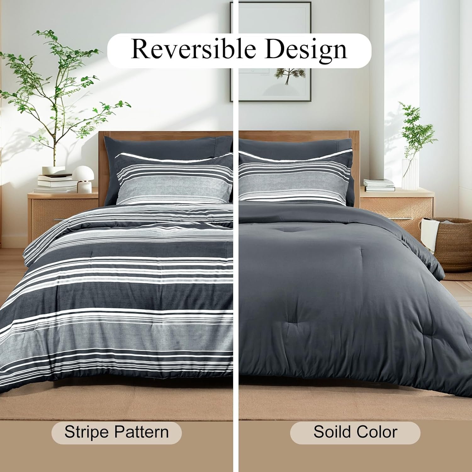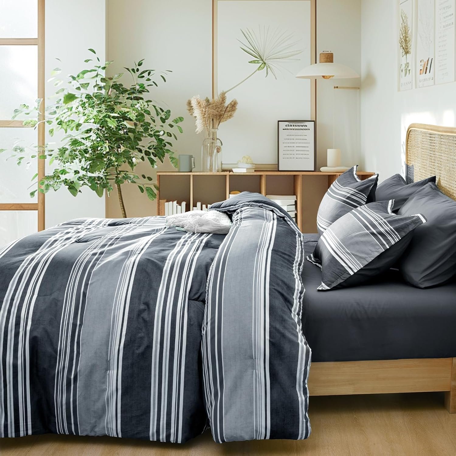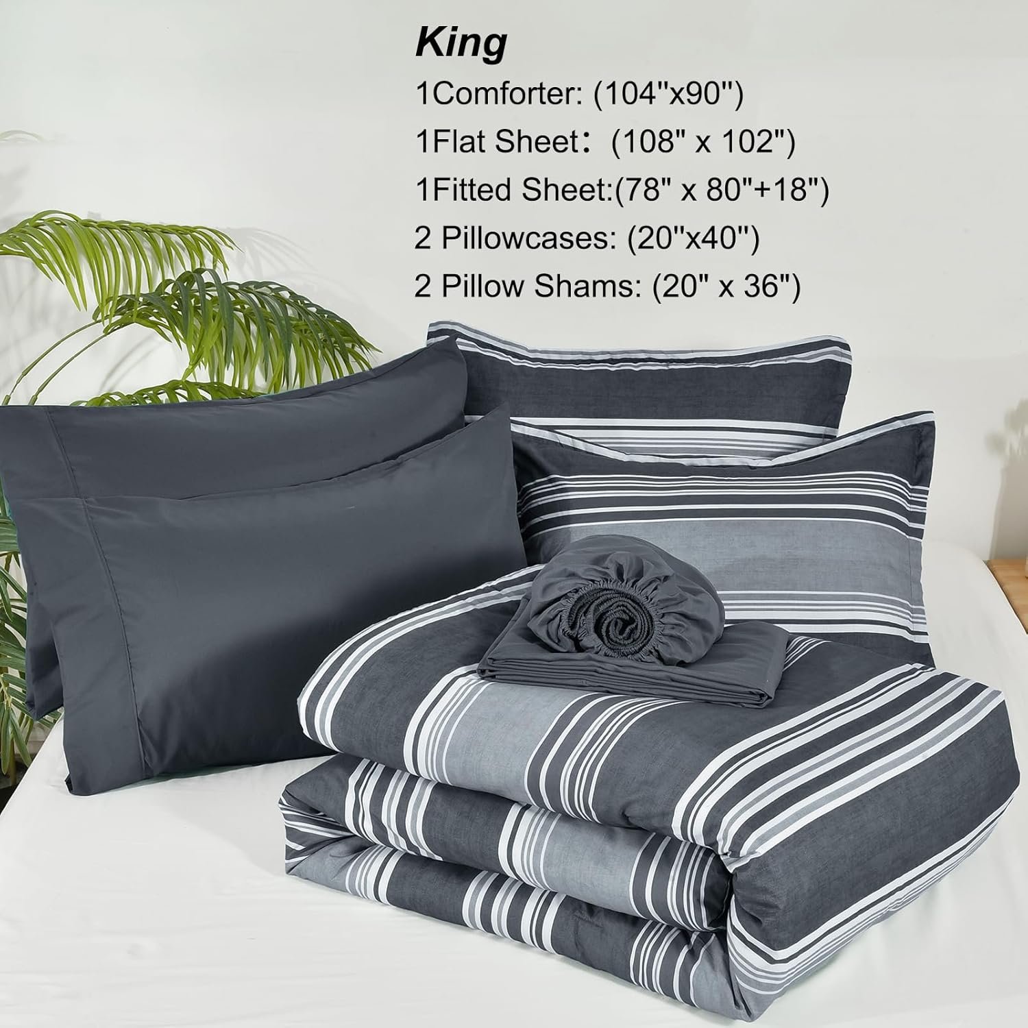 8 reviews for PHF 7 Pieces King Comforter Set, Striped Bed in A Bag, Charcoal Grey Stripe Bedding & 18″ Deep Pocket All Season, Ultra Soft Bedding Sets with Comforter, Sheets, Pillowcases & Shams