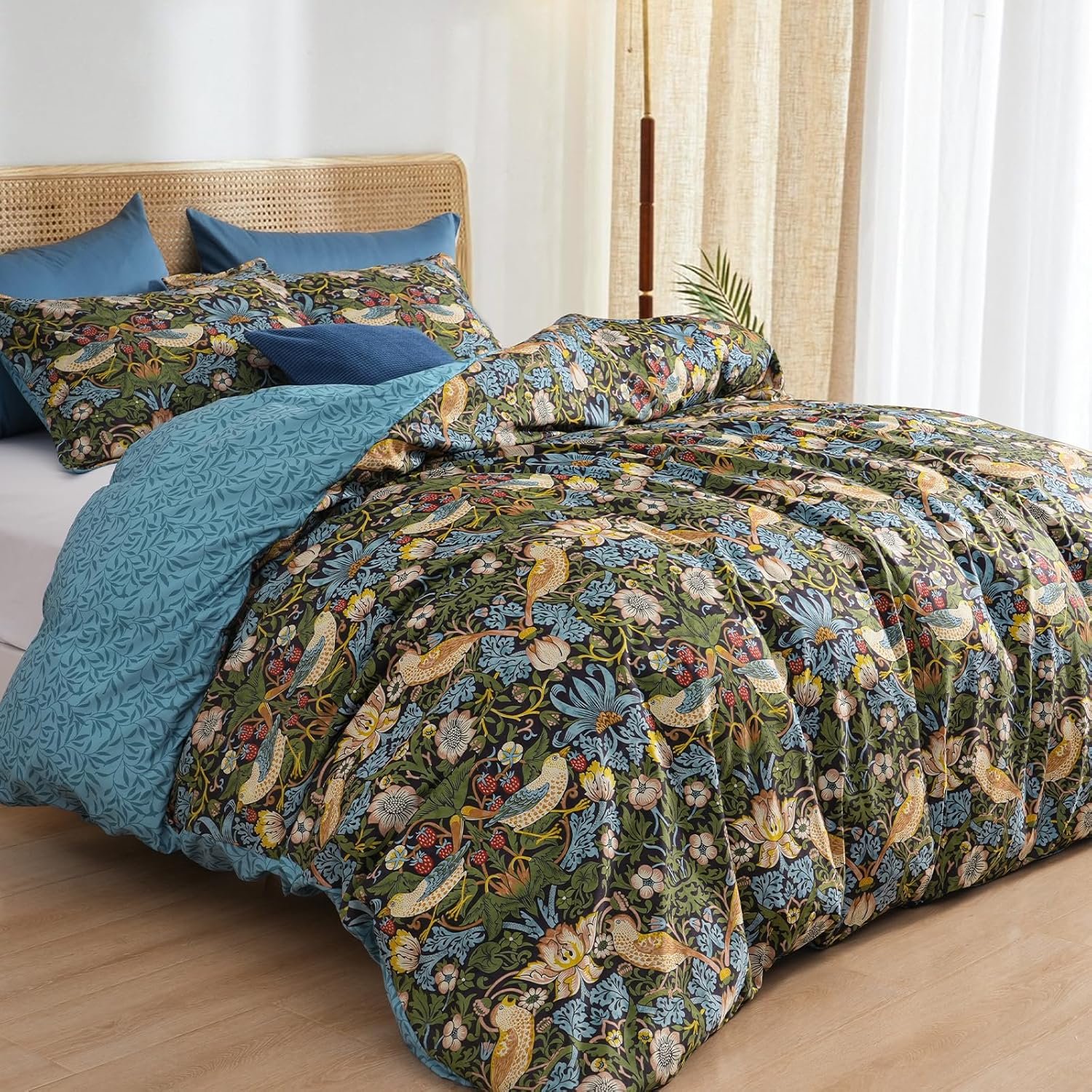 10 reviews for PHF Ultra Soft Floral Duvet Cover Queen Size, Revisible Boho Printed Vintage Bedding Set 3 Pieces, Comfy Durable Morris Garden Duvet Cover Set with 2 Pillow Shams, Zipper Closure and 8 Ties, 90″x90″