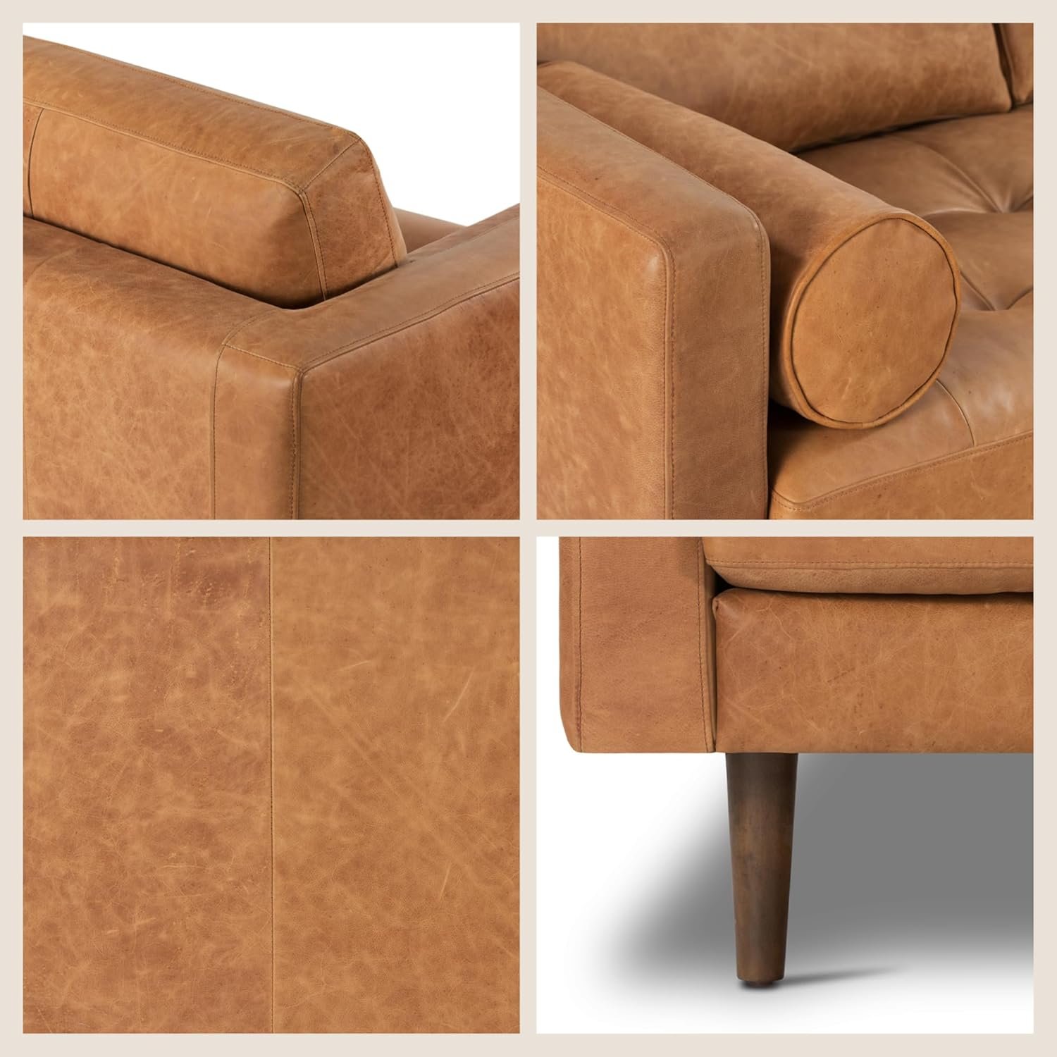 6 reviews for POLY & BARK Napa 88.5″ Leather Sofa – Full-Grain Italian-Tanned Aniline Leather, Feather-Down Comfort, Solid Wood Frame, Walnut Legs, Cognac Tan