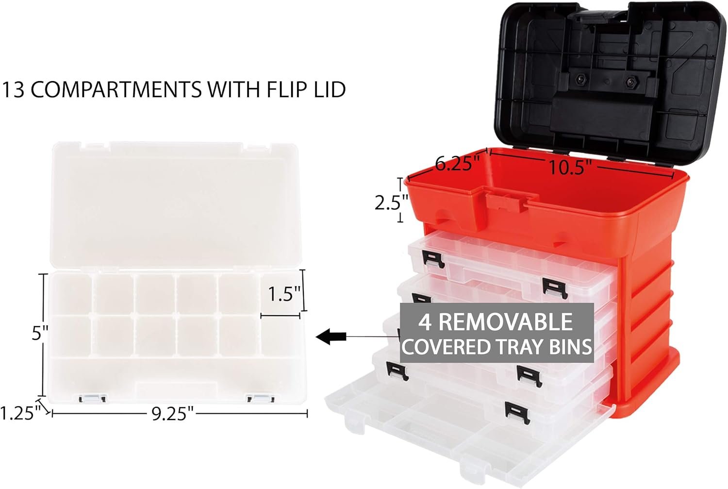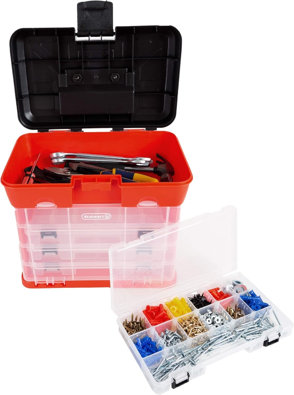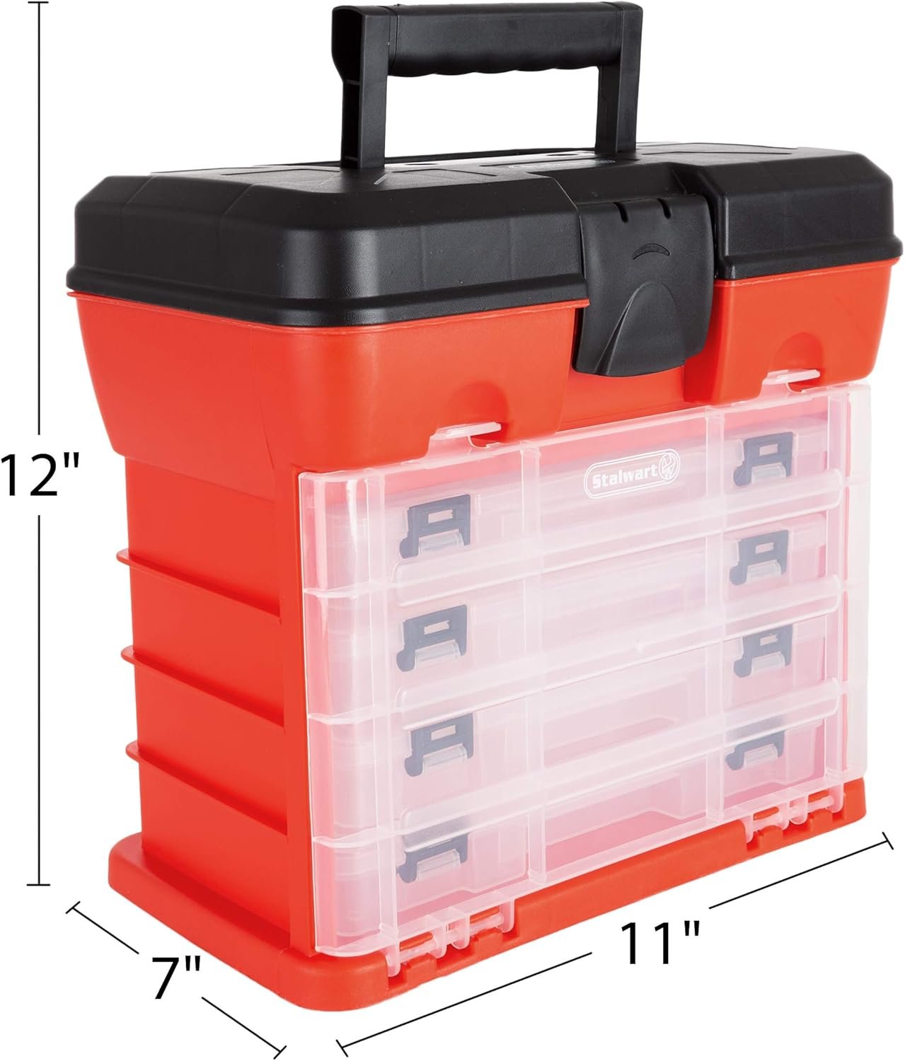 13 reviews for Portable Tool Storage Box – Small Parts Organizer with 4 Multi-Compartment Trays for Fishing Tackle, Hand Tools, or Craft Supplies by Stalwart (Red)
