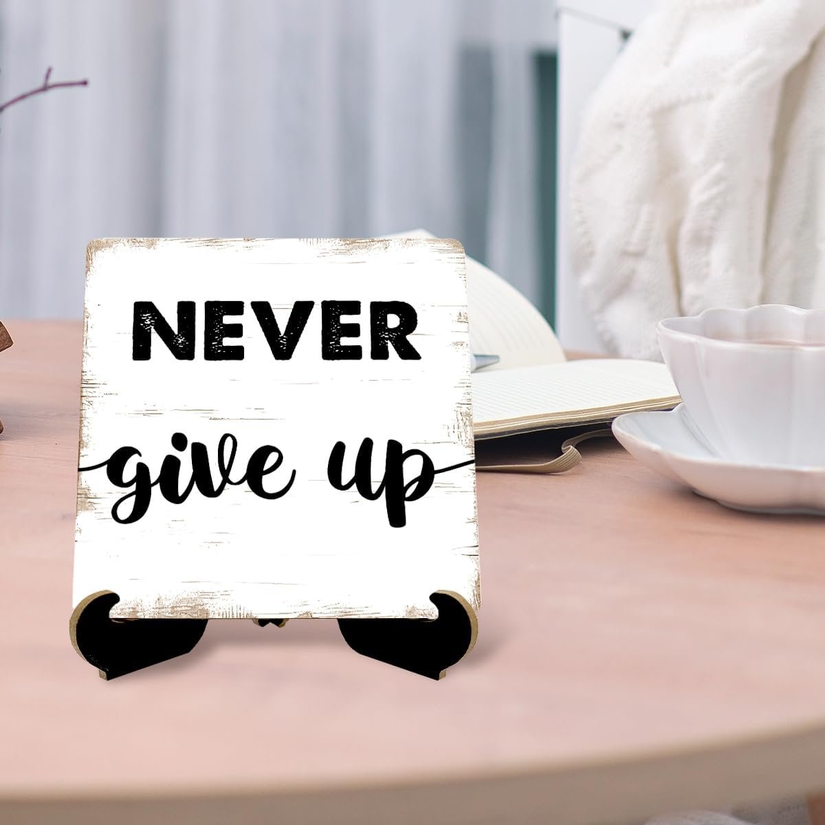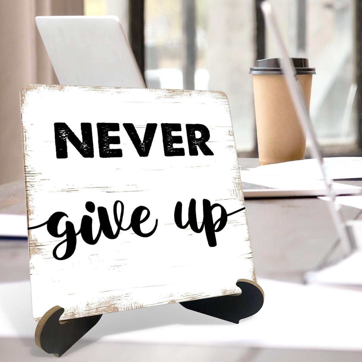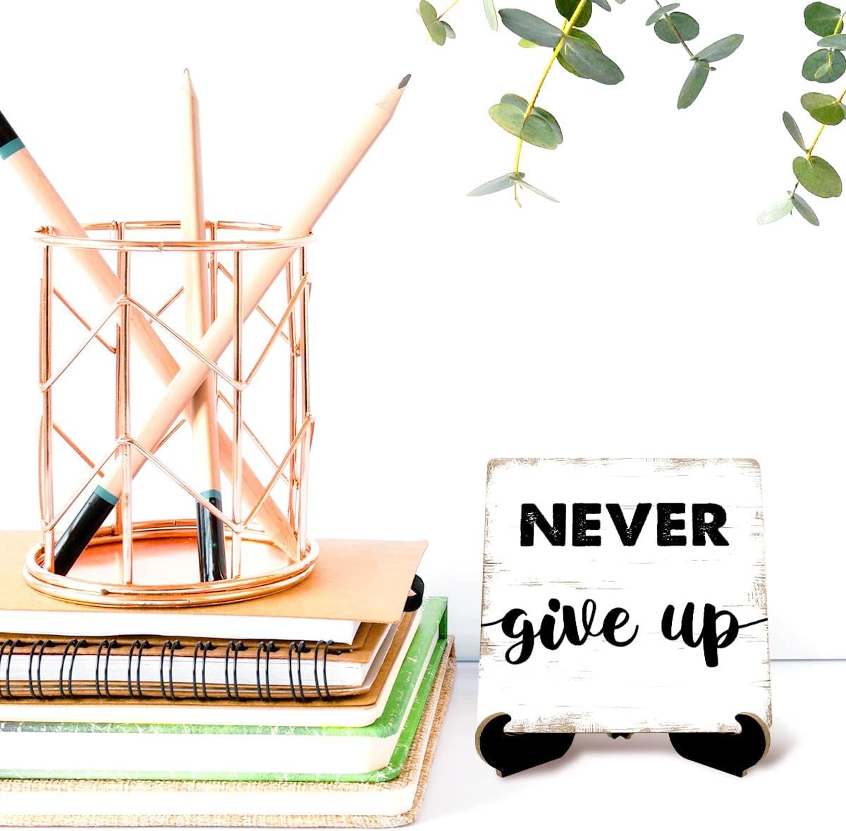 Positivity Reminder Encouragement Quote Wooden Plaque Sign with Holder Stand 3.9×3.9 INCH, Wellness Encouragement Desk Shelf Decor for Freshman Programmer
