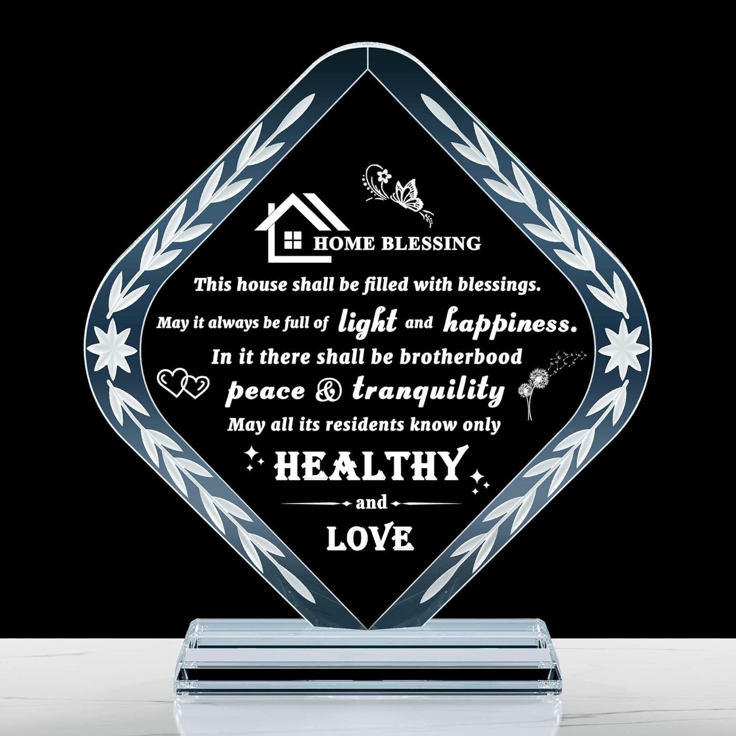 Qianwei House Warming Gifts New Home Crystal Bless This Home Plaque Best Hosewarming Presents 2025 New House Gifts for Couple Women Men