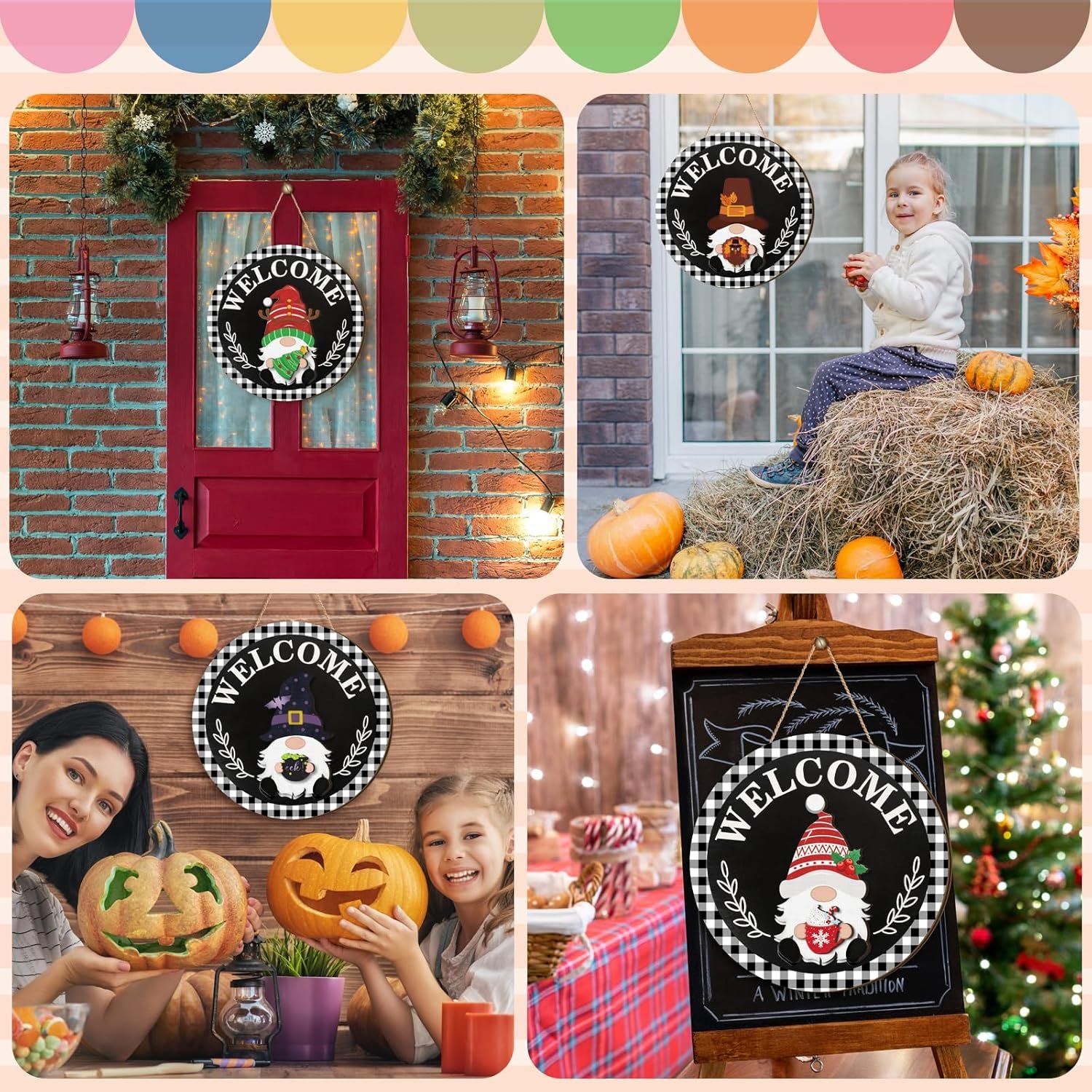 13 reviews for Qunclay Interchangeable Wooden Gnome Decor Holiday Seasonal Gnome Decorations with Magnet Pieces and Detachable Hats Changeable Welcome Sign for Home(Trendy Style)