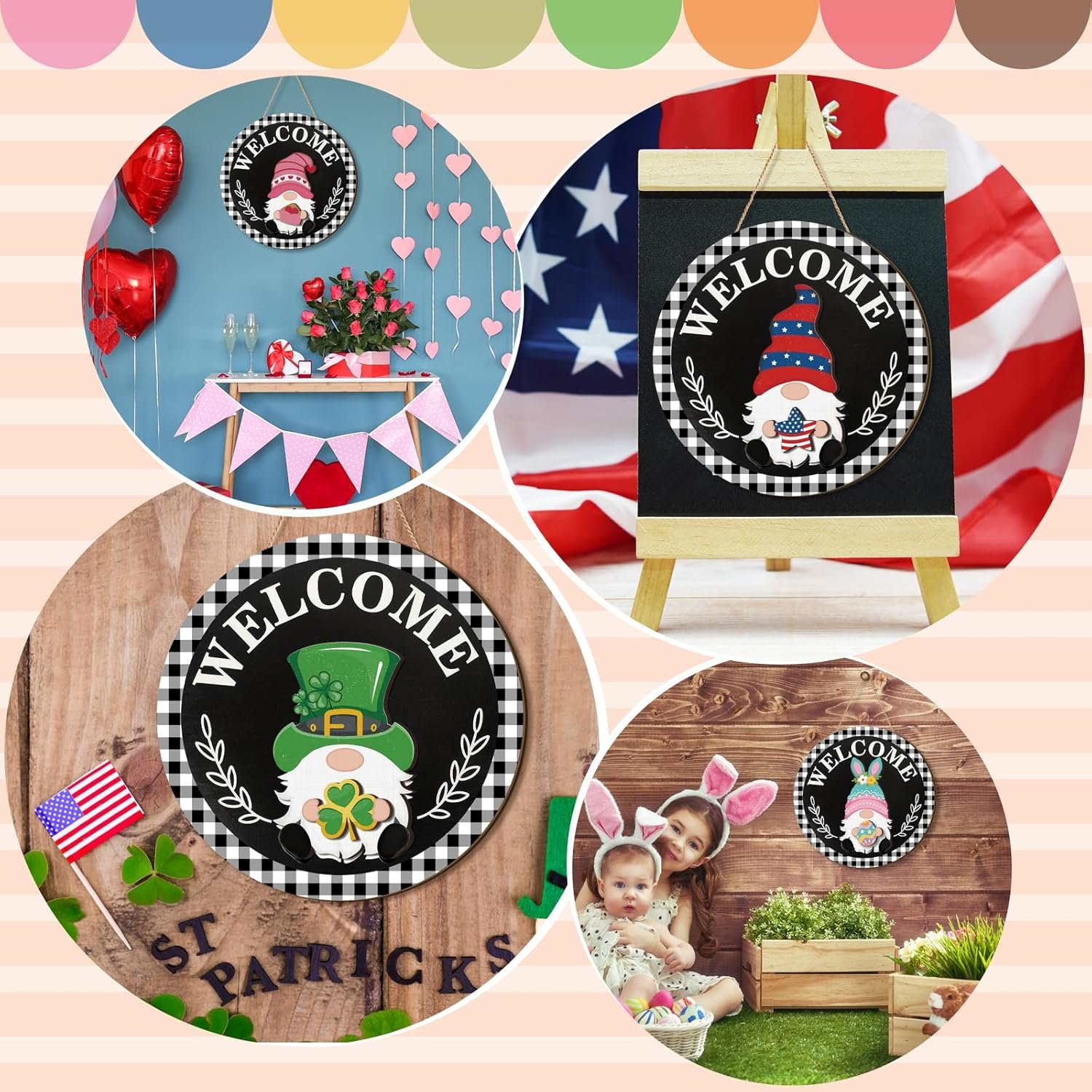 Tags: Changeable, Decor, Decorations, Detachable, Gnome, Hats, Holiday, HomeTrendy, Interchangeable, Magnet, Pieces, Qunclay, Seasonal, Sign, Style, Wooden