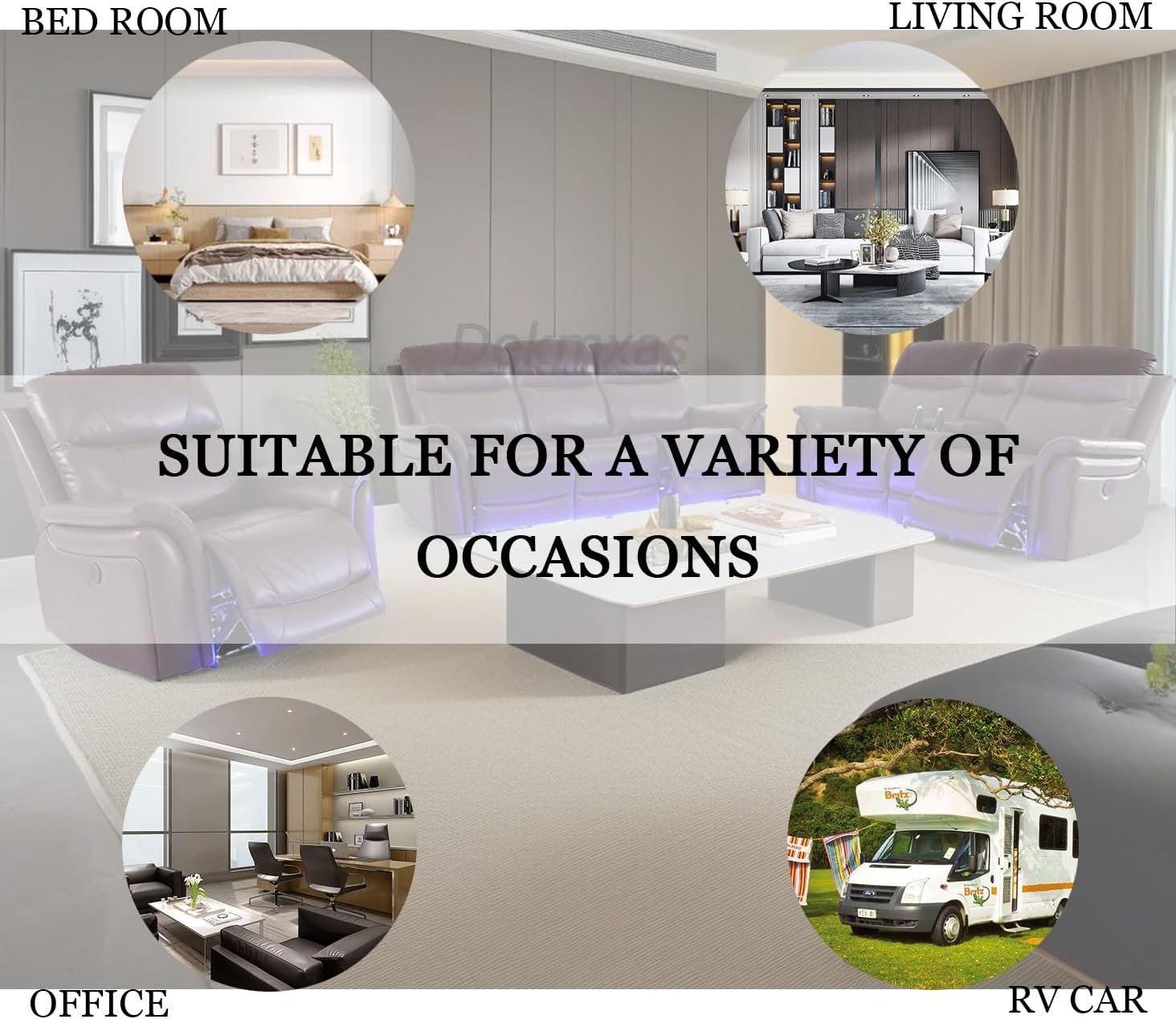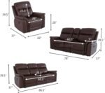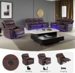 3 reviews for Recliner Couch Set 3PCS Breathing Leather Living Room Sofa Set Reclining Sofa Set with Storage Console/LED Blue Light for Apartment/Home/Office (Reddish Brown, 3PCS Set)