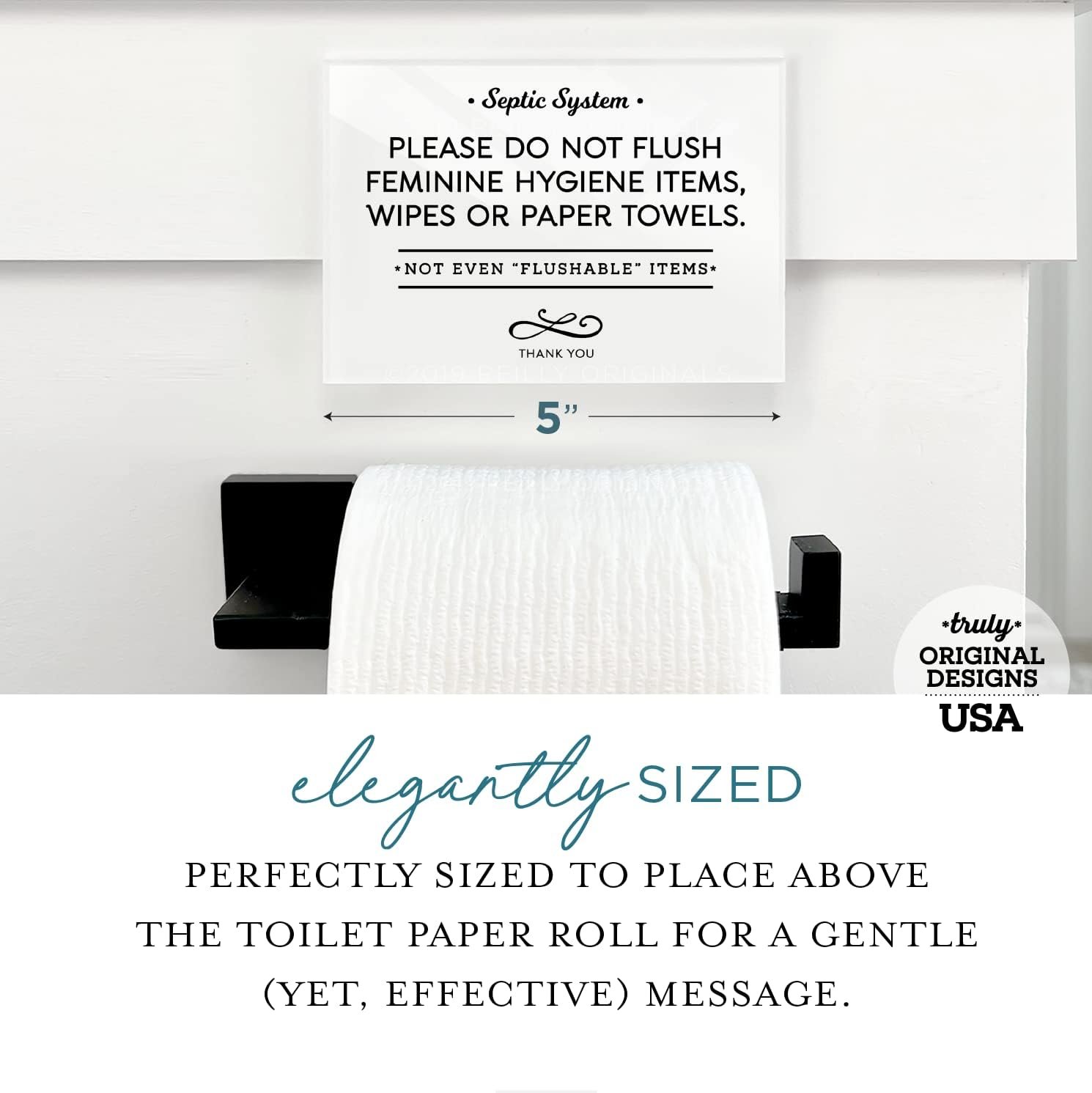 8 reviews for Reilly Originals 3.5×5 Inch Septic System Bathroom Sign, Do Not Flush Feminine Hygiene Items, Wipes, Paper Towels ~ Ready to Stick ~ Premium Finish, Durable (White)
