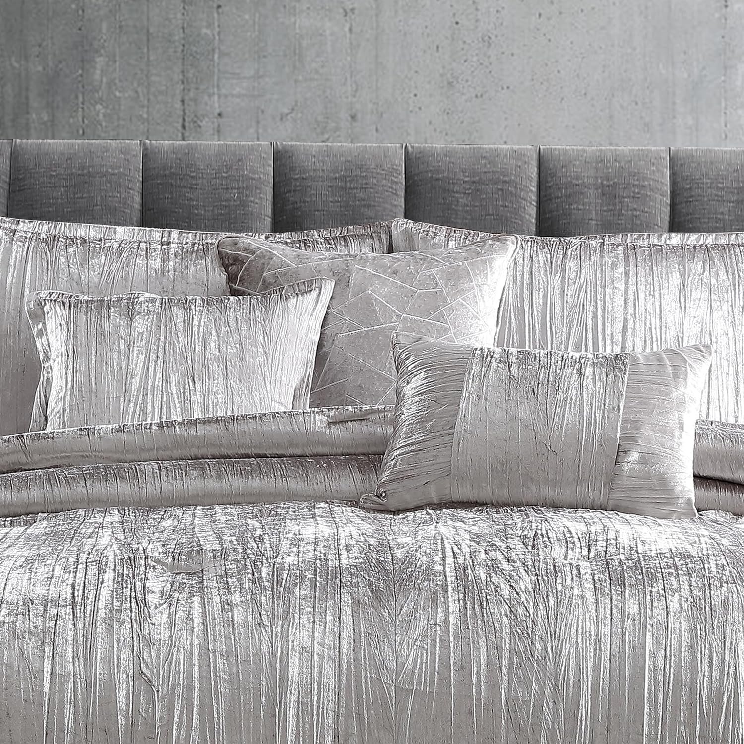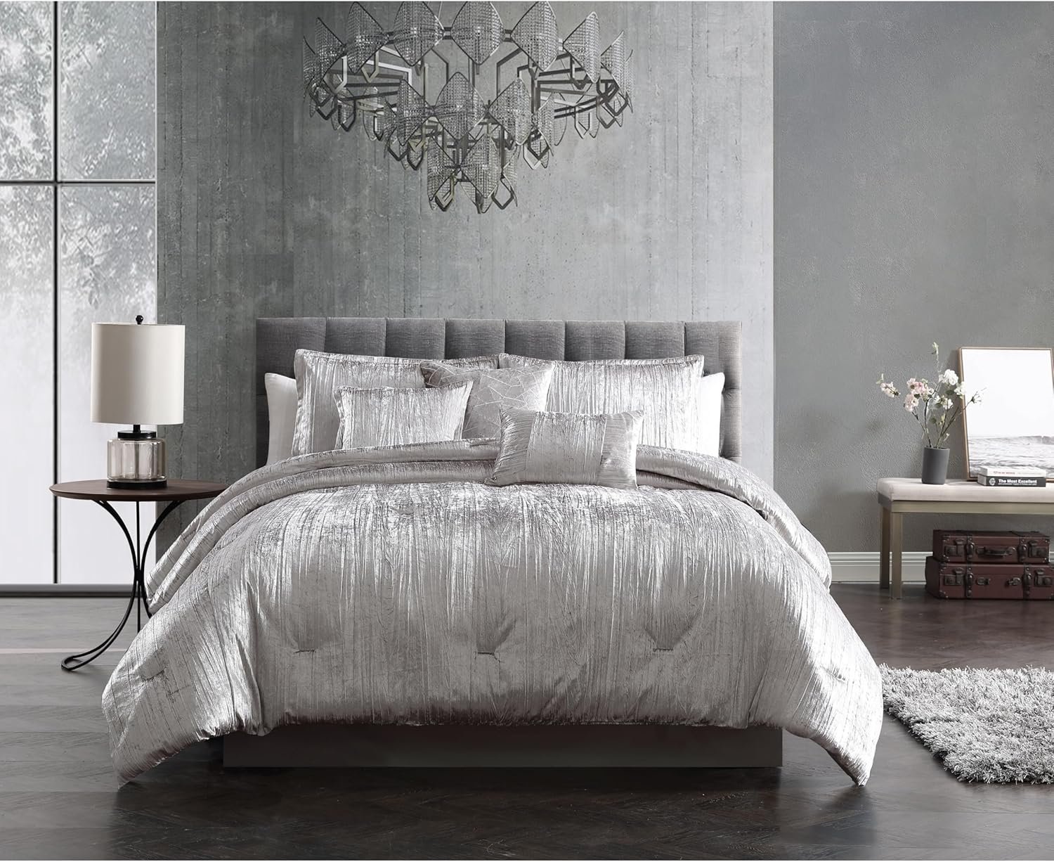 This set is so classy. If you’re looking for something sliver but not too shiny. This is it. It comes with extra pillows. This set will take your room to the next level.