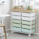 This green 10-drawer rolling storage cart is an absolute game-changer for anyone needing serious organization, from crafters to educators. Its ten generously sized drawers offer an impressive amount of storage, making it perfect for corralling art supplies, classroom materials, or home office essentials. The wooden tabletop is a fantastic bonus, providing a sturdy and functional workspace right on top of your storage. The smooth-rolling wheels make it effortlessly portable, allowing you to easily move your supplies wherever they’re needed. For maximum efficiency, consider labeling each drawer for quick access to specific items, and utilize the tabletop for ongoing projects. Easy to assemble. This cart isn’t just storage; it’s an investment in a more organized and productive environment.