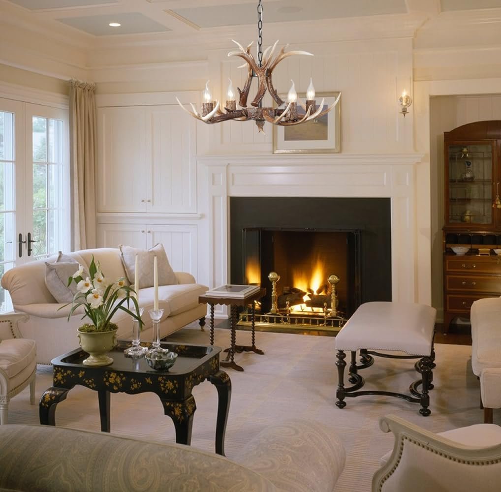 1 review for Rustic Deer Antler Chandelier 4-Light E12 Dimmable 25″ Vintage Farmhouse Fixture for Dining/Kitchen Island/Living Room/Lodge Decor(4 Lights)