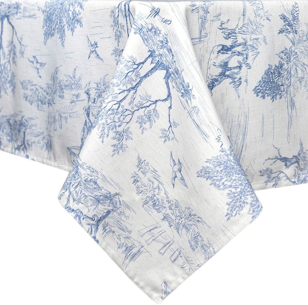 Rustic Tablecloth Classic French Village Printed Linen Fabric Table Cover Farmhouse Decoration 55×120 Inches Rectangle/Oblong Blue for Kitchen Dining