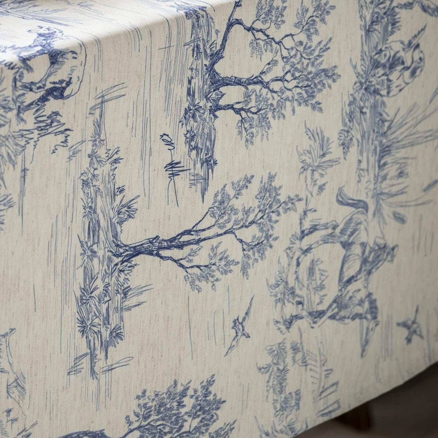 I used two of these to cover my 60” round table for Thanksgiving. Love the print and the blue and cream color will work year-round depending on the rest of the decor/centerpiece used. This would be lovely used as curtains, too.