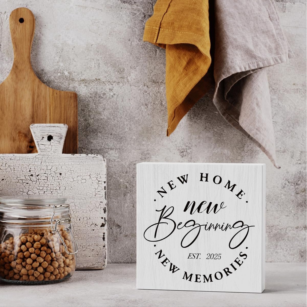 Rustic Wooden Housewarming Gift Box – 5.1 x 5.1 Inches, New Memories, Decor Accessories