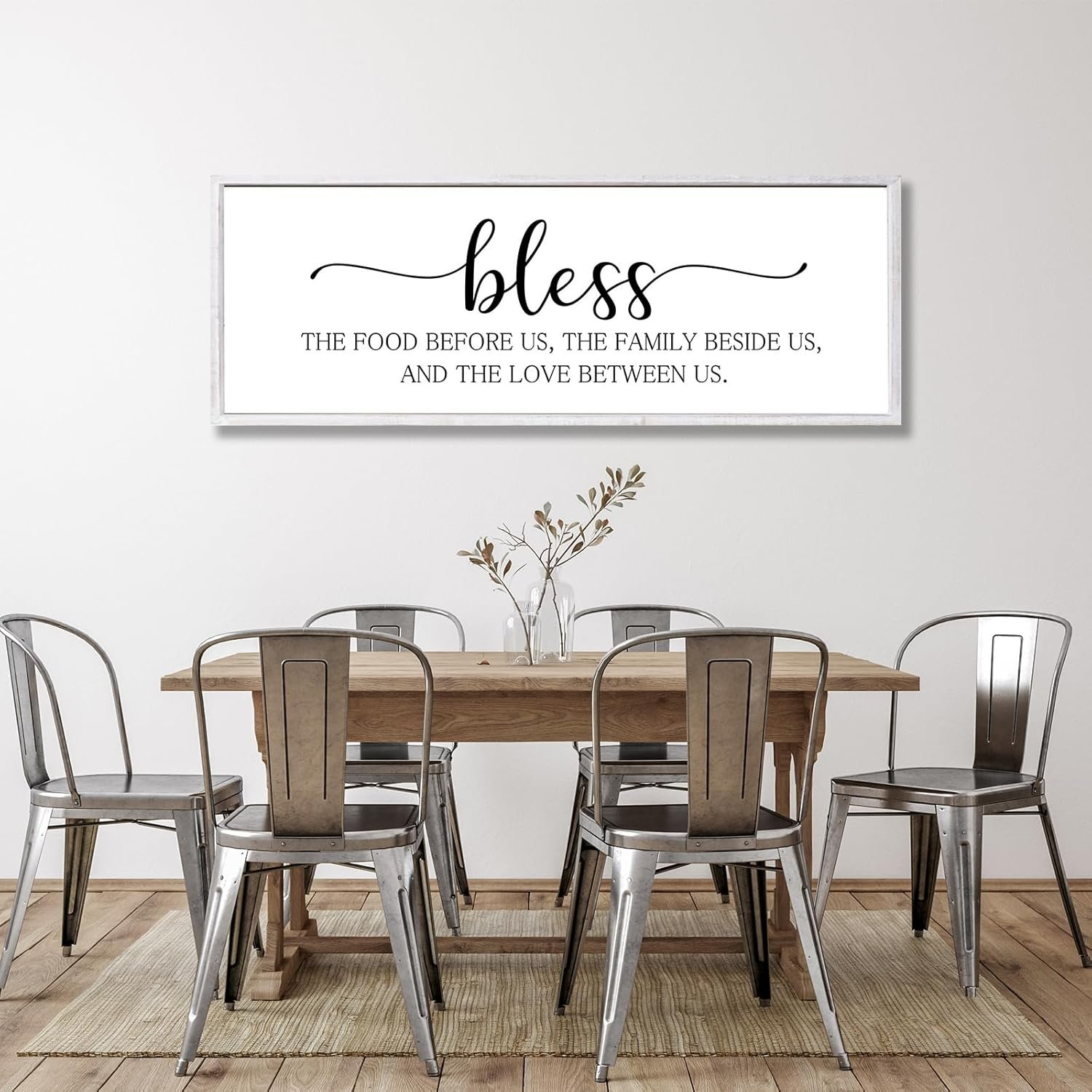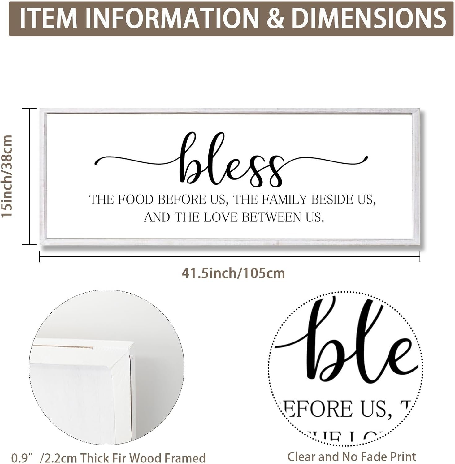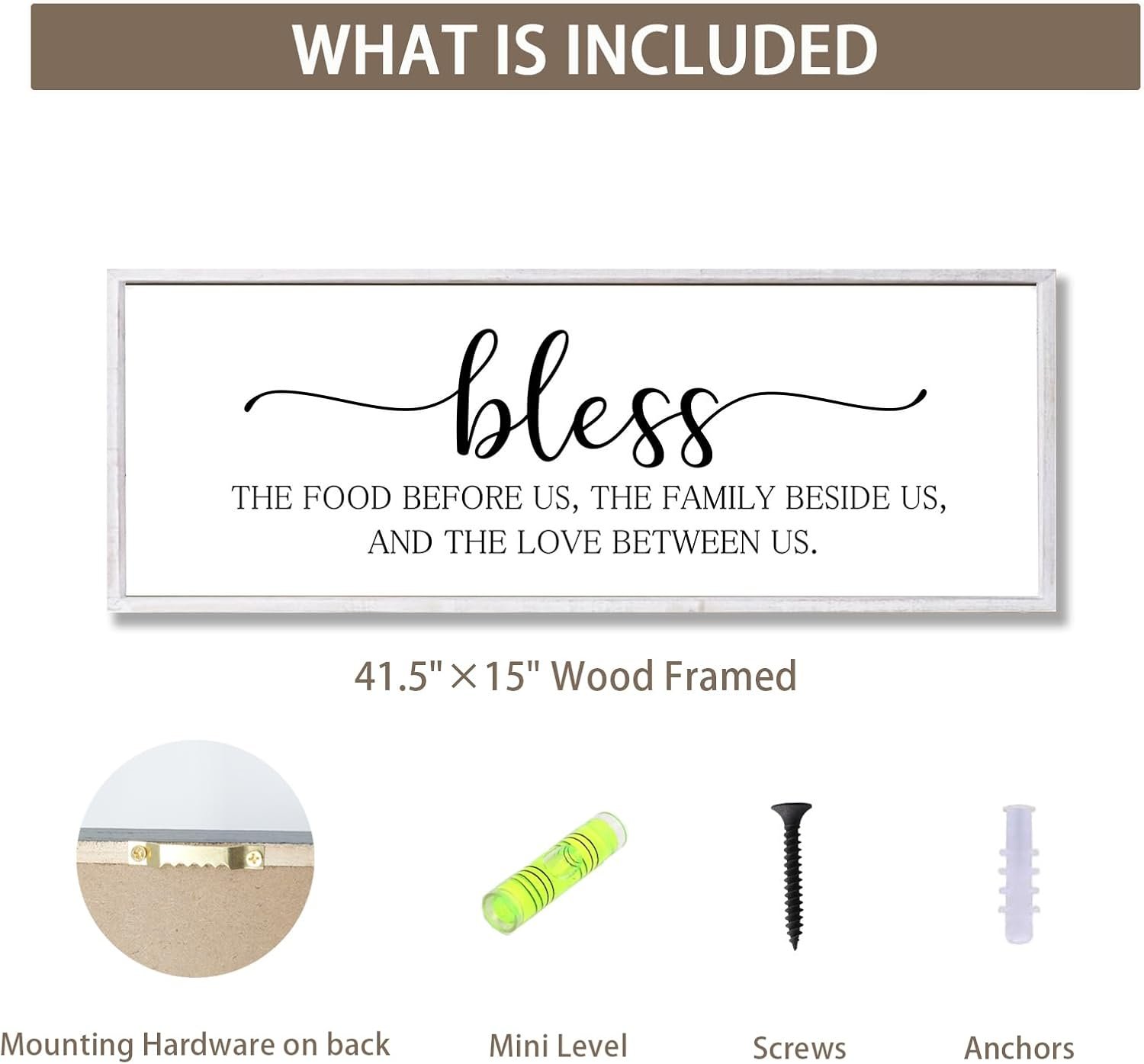 8 reviews for Rutiyoka Bless the Food Before Us Sign Framed Farmhouse Dining Room Wall Decor Large 42″×15″ Wood Kitchen Wall Art White
