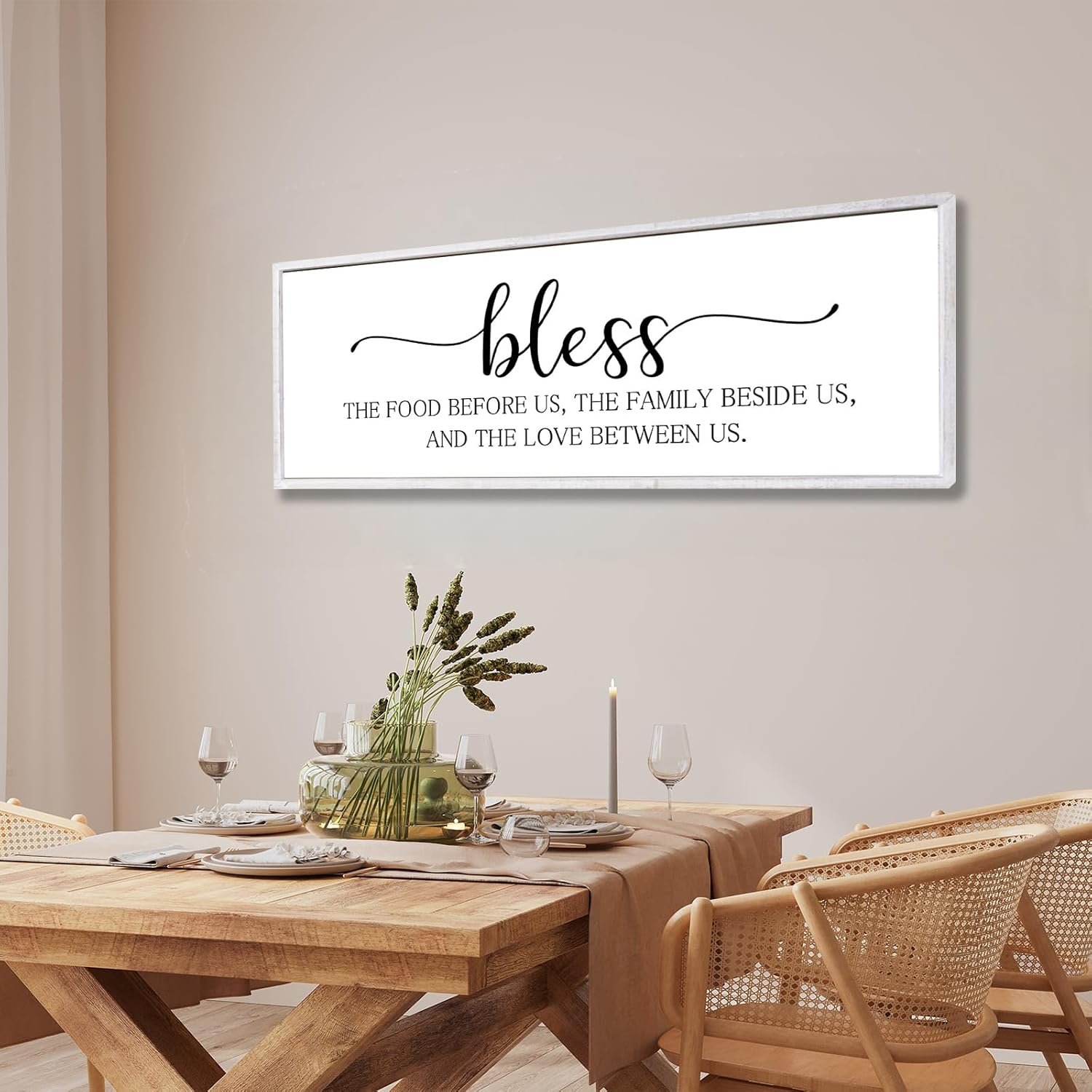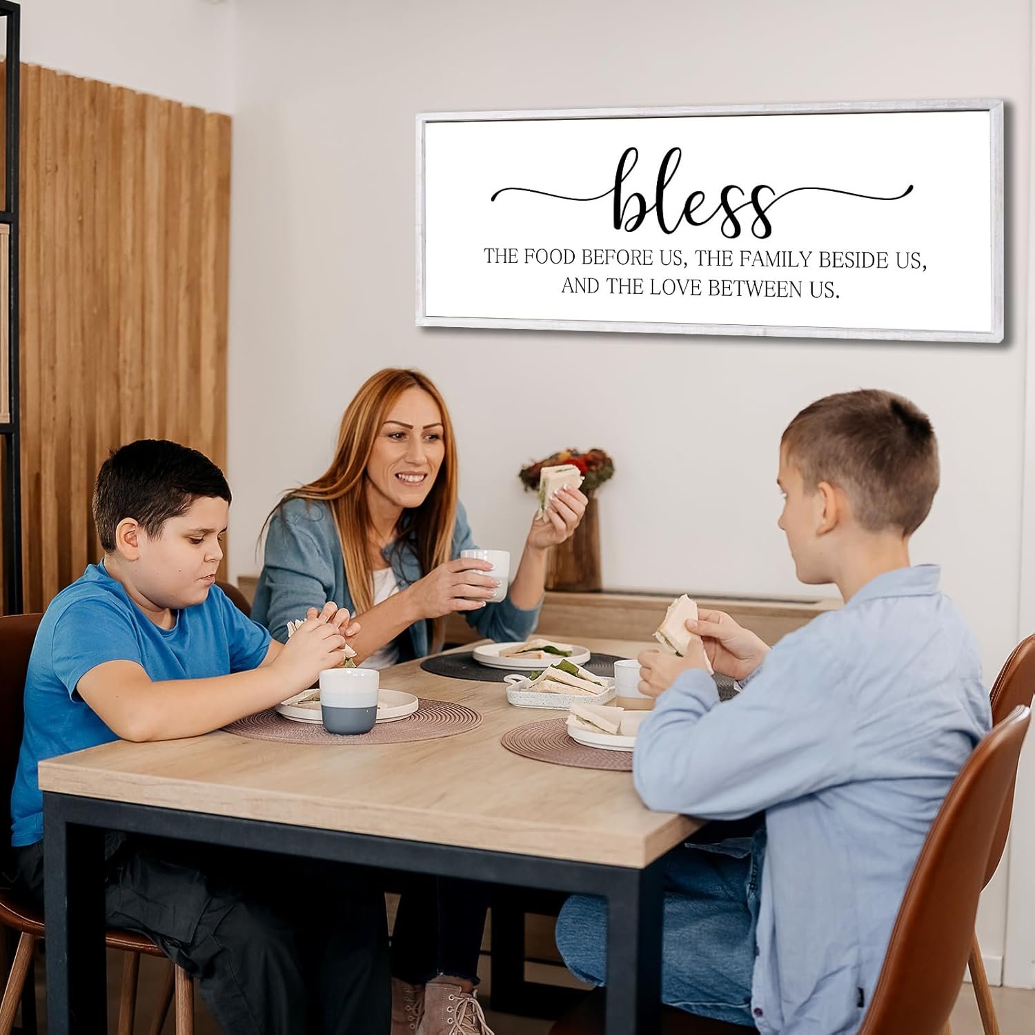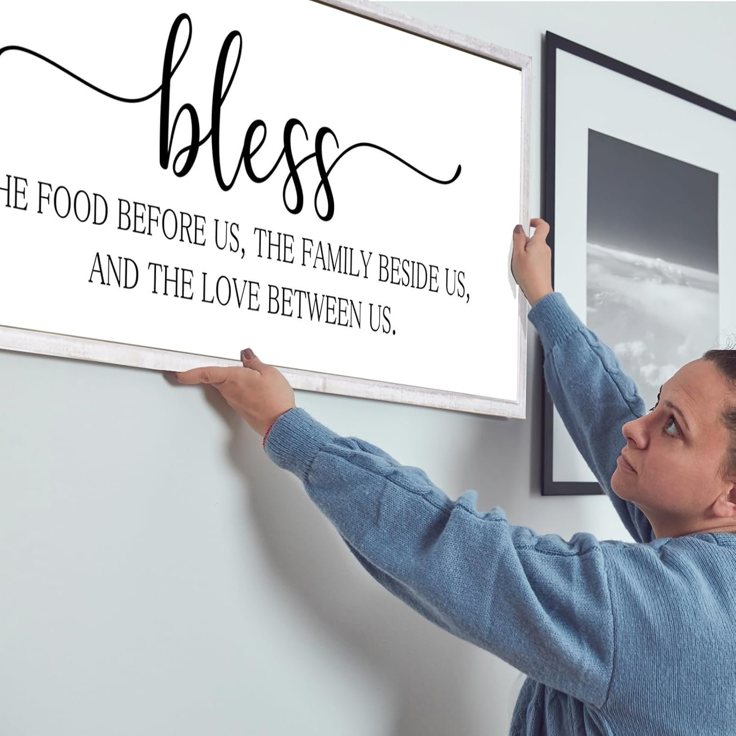 8 reviews for Rutiyoka Bless the Food Before Us Sign Framed Farmhouse Dining Room Wall Decor Large 42″×15″ Wood Kitchen Wall Art White