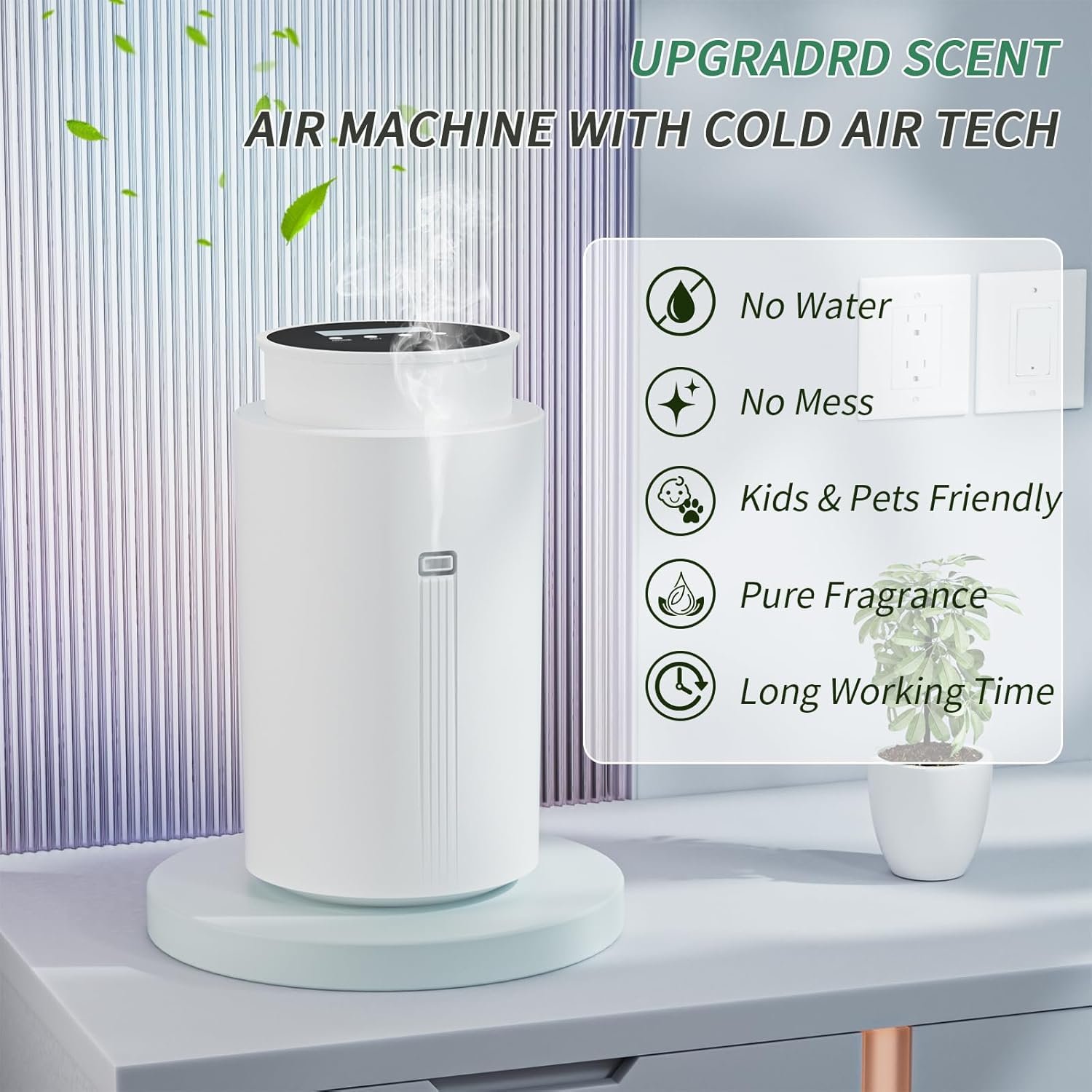 ⸻This Wankeer scent machine has completely upgraded my home—it legit feels like I’m walking into a spa or a fancy hotel every time I open the door. It’s strong enough to cover big spaces (up to 1500 sq. ft.) but still super easy to use. No water needed, just clean and consistent fragrance all day long. The Bluetooth control is super convenient, and it’s quiet and sleek so it blends right in. Honestly, for the price, it feels like a luxury upgrade without the luxury price tag. Definitely recommend if you love that fresh, spa-like vibe.