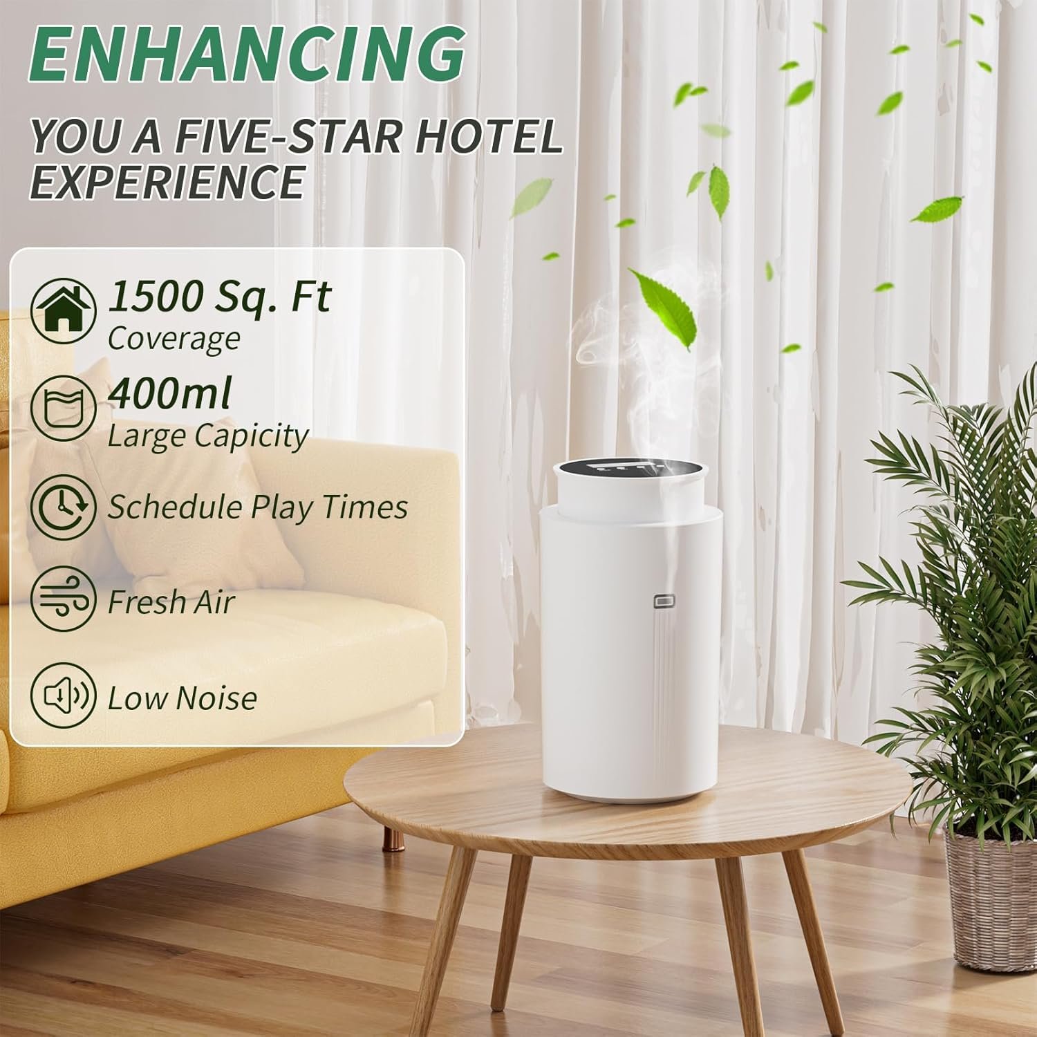 I bought this scent machine hoping to make my home smell like one of those high-end hotels, and it actually delivers. The scent spreads evenly through the house, you can smell it when you walk in, but it’s never overpowering. It gives the space that clean, elegant “hotel lobby” vibe I was going for.Setup was quick, and I love that it connects via Bluetooth so I can control the intensity and schedule right from my phone. It’s also completely waterless, so no mess or constant refilling like with regular diffusers.It’s a bit of an investment, but the quality really shows. The design looks sleek and professional, and the fragrance fills multiple rooms effortlessly.If you love a good home atmosphere or want your house to smell like a spa or luxury hotel, this is 100% worth it.