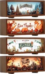 5 reviews for Seasonal Decor Night Light Wood Light Box Christmas 3D Table Lamp with Interchangeable Acrylic Pattern Slides, Holiday Decor Shadow Box Gifts for Thanksgiving Easter Halloween Christmas